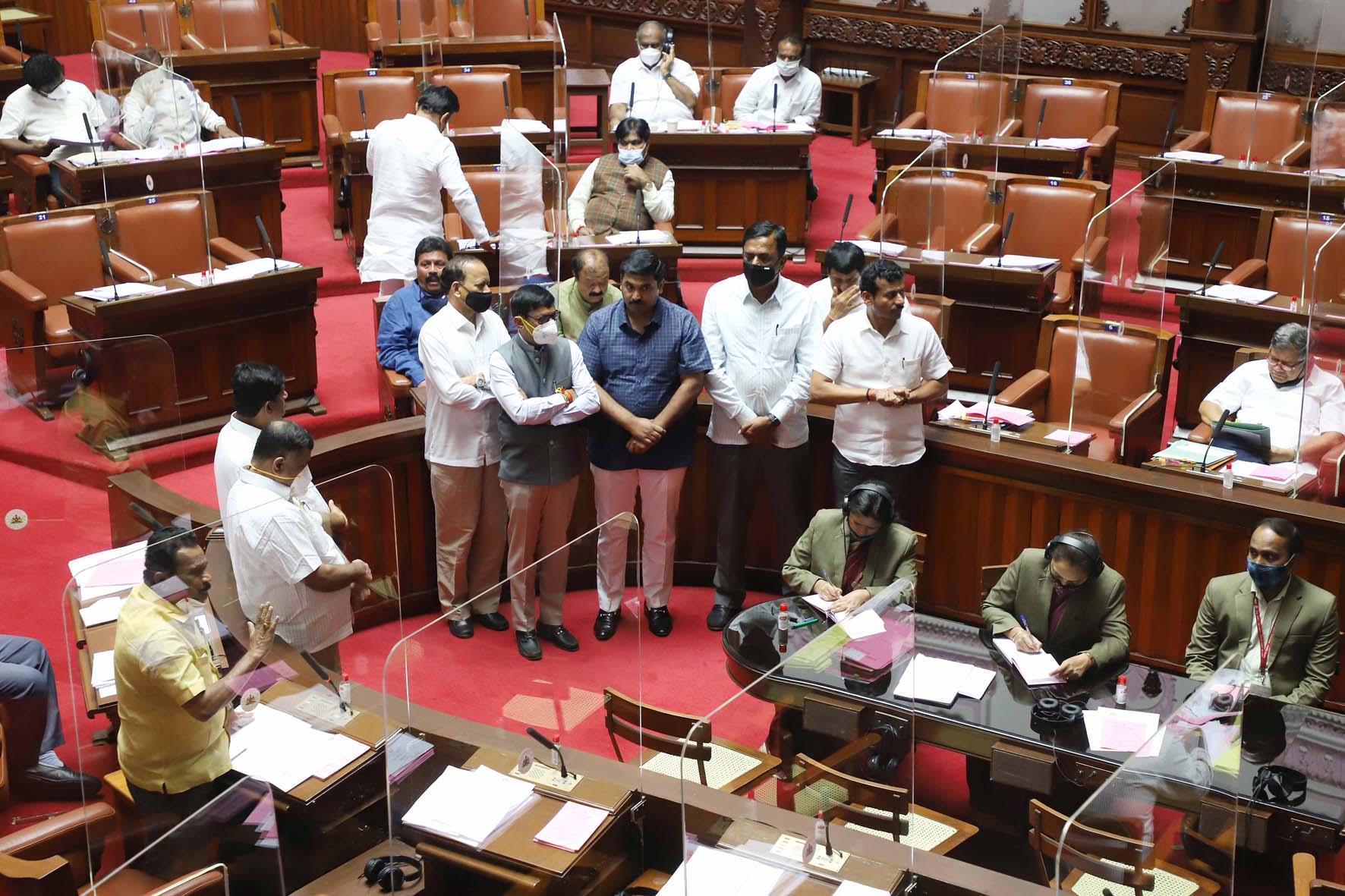 ಜೆಡಿಎಸ್ ಸದಸ್ಯರ ಅಂತಿಮ ನಿಲುವು ಏನು ಎಂದು ಧರಣಿ ನಿರತ ಸದಸ್ಯರನ್ನು ಪ್ರಶ್ನಿಸಿದರು. ಅದಕ್ಕೆ ಜೆಡಿಎಸ್ ಸದಸ್ಯರು ಸದನ ಸಮಿತಿ ರಚಿಸುವಂತೆ ಬಿಗಿ ಪಟ್ಟುಹಿಡಿದಿದ್ದರು. ಆಗ ಸಭಾಪತಿ ಬಸವರಾಜ ಹೊರಟ್ಟಿ ಅವರು, ಆಡಳಿತ ಹಾಗೂ ಪ್ರತಿಪಕ್ಷಗಳ ಸದಸ್ಯರನ್ನು ತಮ್ಮ ಕೊಠಡಿಗೆ ಮಾತುಕತೆಗೆ ಕರೆದು ಕೆಲ ಕಾಲ ಕಲಾಪ ಮುಂದೂಡಿದ್ದರು.