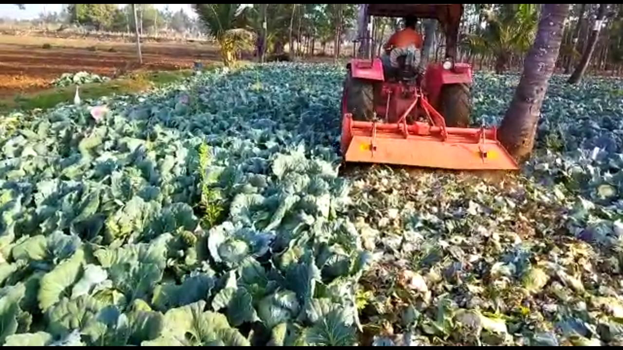 ಇದರಿಂದ ಮತ್ತಷ್ಟು ನೊಂದುಕೊಂಡಿದ್ದ ರೈತ ಬಸವರಾಜು ಮಂಗಳವಾರ ಬೆಳಗ್ಗೆ ಟ್ಯ್ರಾಕ್ಟರ್ ಬಳಸಿ ಎಕರೆಯಲ್ಲಿ ಸಮೃದ್ಧವಾಗಿ ಬೆಳದಿದ್ದ ಎಲೆಕೋಸು ಬೆಳೆ ಸಂಪೂರ್ಣವಾಗಿ ನಾಶ ಮಾಡಿದ್ದಾರೆ.