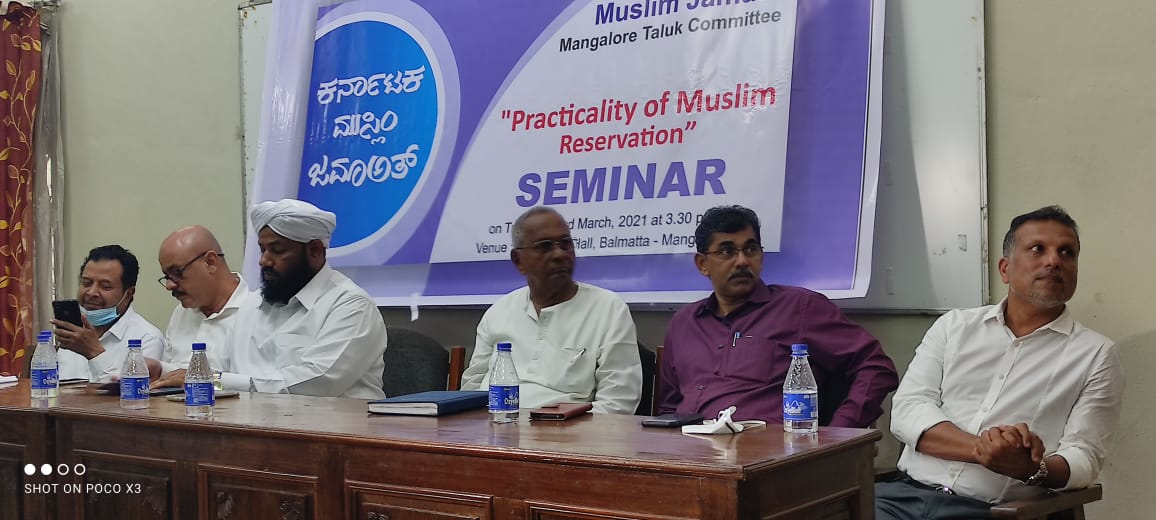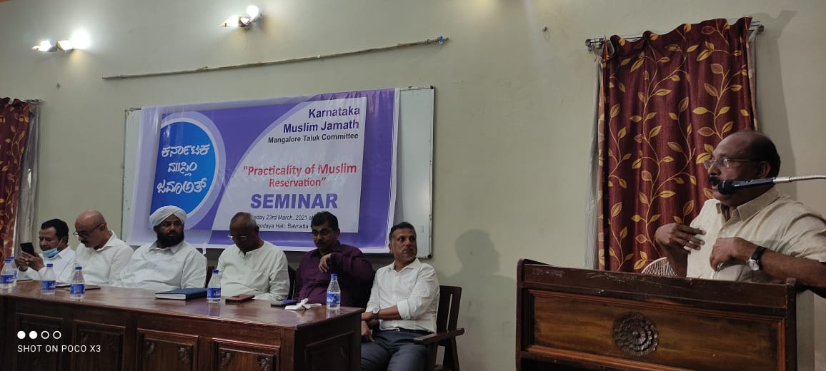 ನಗರದ ಬಲ್ಮಠದ ಸಹೋದಯ ಸಭಾಂಗಣದಲ್ಲಿ ಕರ್ನಾಟಕ ಮುಸ್ಲಿಂ ಜಮಾಅತ್ನ ಮಂಗಳೂರು ತಾಲೂಕು ಸಮಿತಿಯಿಂದ ಮಂಗಳವಾರ ಸಂಜೆ ಹಮ್ಮಿಕೊಳ್ಳಲಾದ ‘ಮುಸ್ಲಿಂ ಮೀಸಲಾತಿ ಪ್ರಾಯೋಗಿಕವೇ?’ ಎಂಬ ವಿಚಾರ ಸಂಕಿರಣದಲ್ಲಿ ಅವರು ಮಾತನಾಡಿದರು.