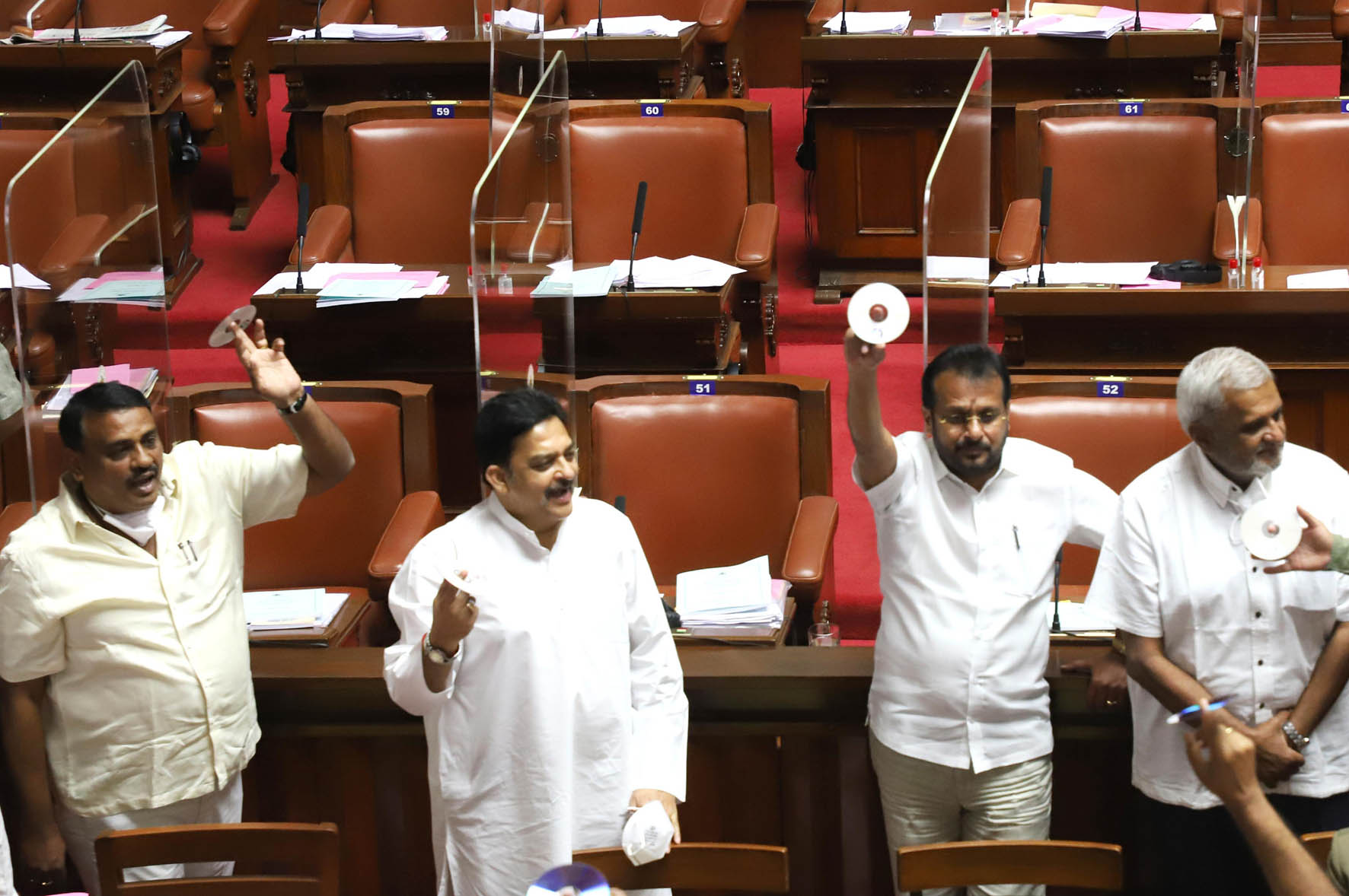 ಈ ವೇಳೆ ಕಾಂಗ್ರೆಸ್ ಸದಸ್ಯರು ಸದನದ ಬಾವಿಗಿಳಿದು ಸಿಡಿ ಪ್ರಕರಣದ ಕುರಿತು ಚರ್ಚೆಗೆ ಅವಕಾಶ ಕೊಡಬೇಕೆಂದು ಪ್ರತಿಭಟನೆ ನಡೆಸಿದರು. ಇದರ ಮಧ್ಯೆ ಸಭಾಪತಿ ಬಸವರಾಜ ಹೊರಟ್ಟಿ, ವಿಧೇಯಕಗಳನ್ನು ಓದಿ ಅಂಗೀಕರಿಸಿದರು. ಇದರಿಂದ ಸಿಟ್ಟಿಗೆದ್ದ ಜೆಡಿಎಸ್ ಸದಸ್ಯ ಶ್ರೀಕಂಠೇಗೌಡ, ಸಿಡಿ ಕುರಿತು ಚರ್ಚೆಗೆ ಅವಕಾಶ ಕೊಡದಿದ್ದರಿಂದ ಸಭಾತ್ಯಾಗ ಮಾಡುತ್ತಿರುವುದಾಗಿ ಹೇಳಿ ಹೊರ ನಡೆದರು. ಸಭಾಪತಿ ಸದನವನ್ನು ಮಧ್ಯಾಹ್ನಕ್ಕೆ ಮುಂದೂಡಿದರು.