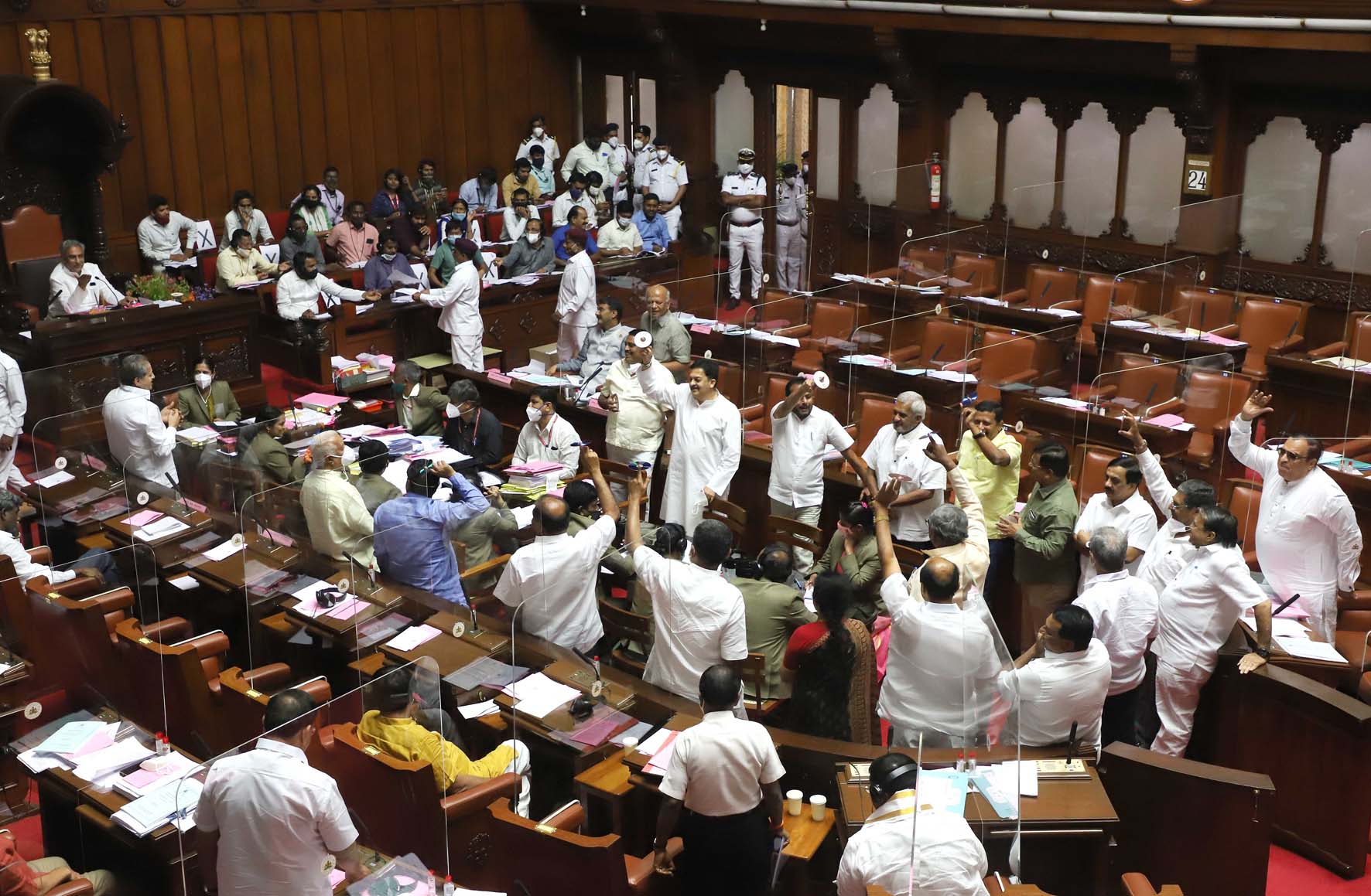 ಸಿಡಿ ಚರ್ಚೆಗೆ ಕಾಂಗ್ರೆಸ್ ಸದಸ್ಯರ ಪಟ್ಟು: ಸದನ ಅನಿರ್ದಿಷ್ಟಾವಧಿ ಮುಂದೂಡಿದ ಸಭಾಪತಿ ಬಸವರಾಜ ಹೊರಟ್ಟಿ