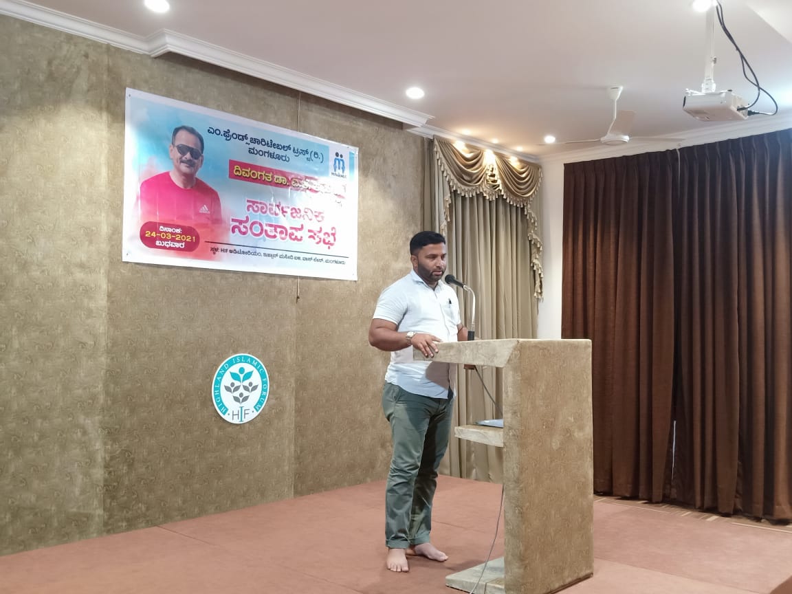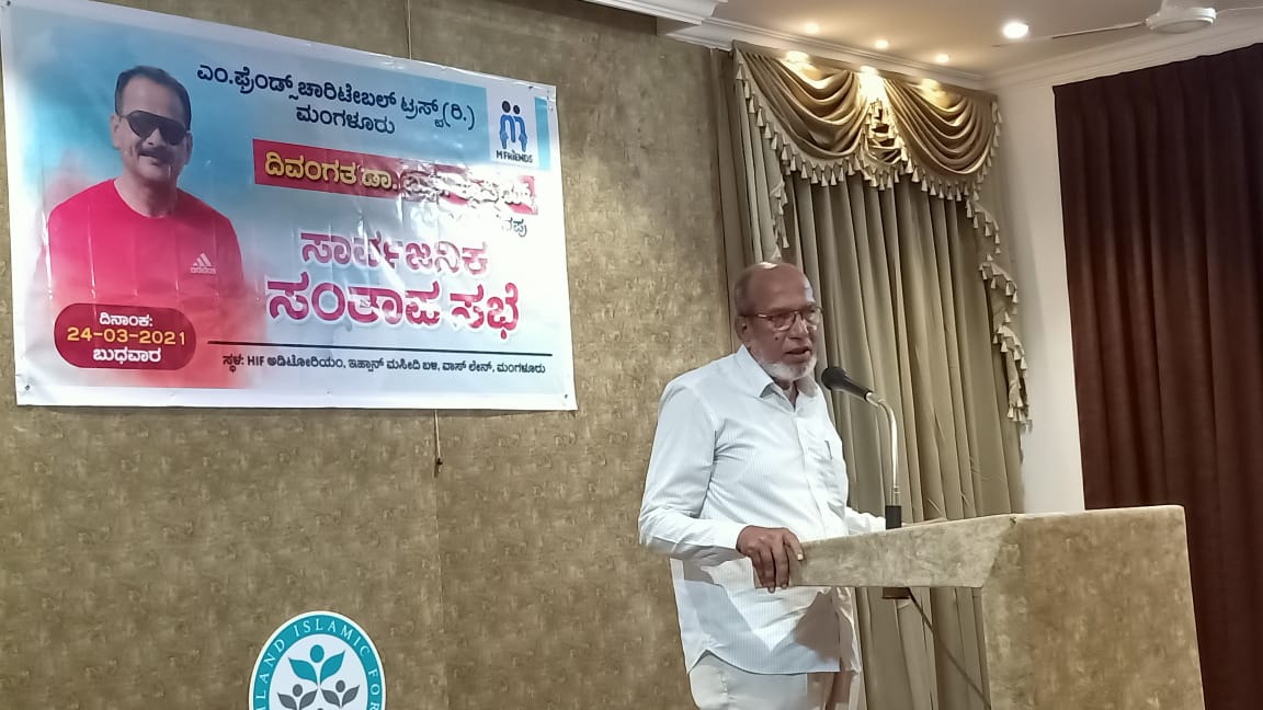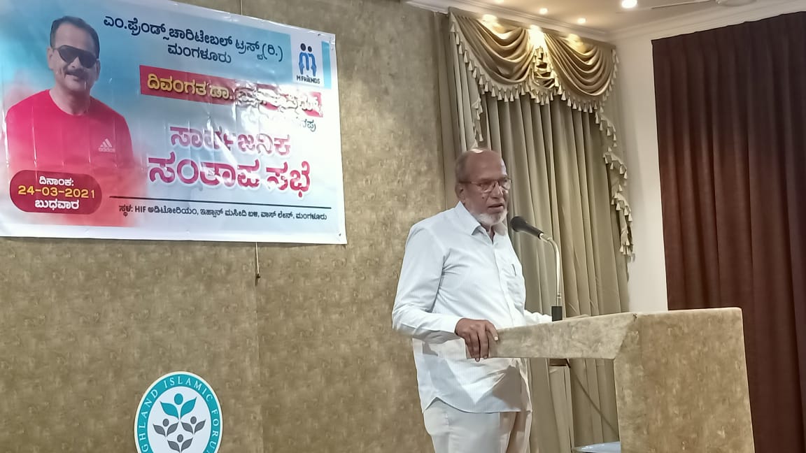 ಮಂಗಳೂರು, ಮಾ.24: ಎಂ.ಫ್ರೆಂಡ್ಸ್ ಚಾರಿಟೇಬಲ್ ಟ್ರಸ್ಟ್ ಮಂಗಳೂರು ಇದರ ಸದಸ್ಯ ಡಾ. ಎ.ಕೆ.ಖಾಸಿಮ್ ಅವರಿಗೆ ನಗರದ ವಾಸ್ಲೇನ್ನಲ್ಲಿರುವ ಇಹ್ಸಾನ್ ಮಸೀದಿ ಬಳಿಯ ಎಚ್ಐಎಫ್ ಆಡಿಟೋರಿಯಂನಲ್ಲಿ ಬುಧವಾರ ಸಾರ್ವಜನಿಕ ಸಂತಾಪ ಸಭೆ ನಡೆಯಿತು.