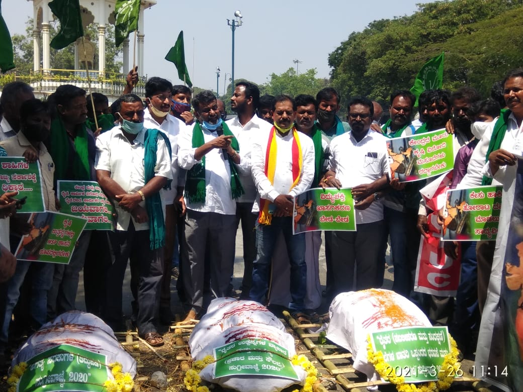 ಮೈಸೂರು : ನೂತನ ಕೃಷಿ ಕಾಯ್ದೆ ವಿರೋಧಿಸಿ ಪ್ರತಿಭಟನೆ