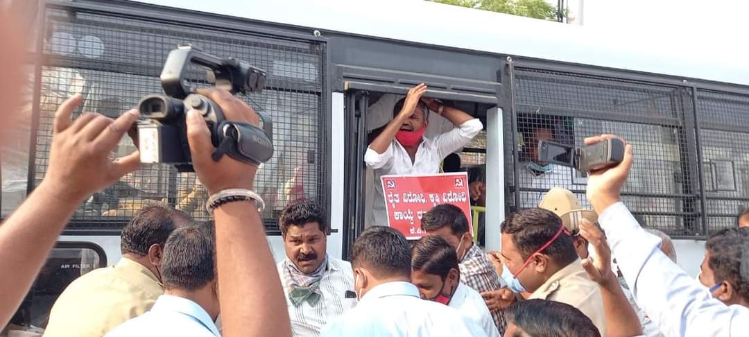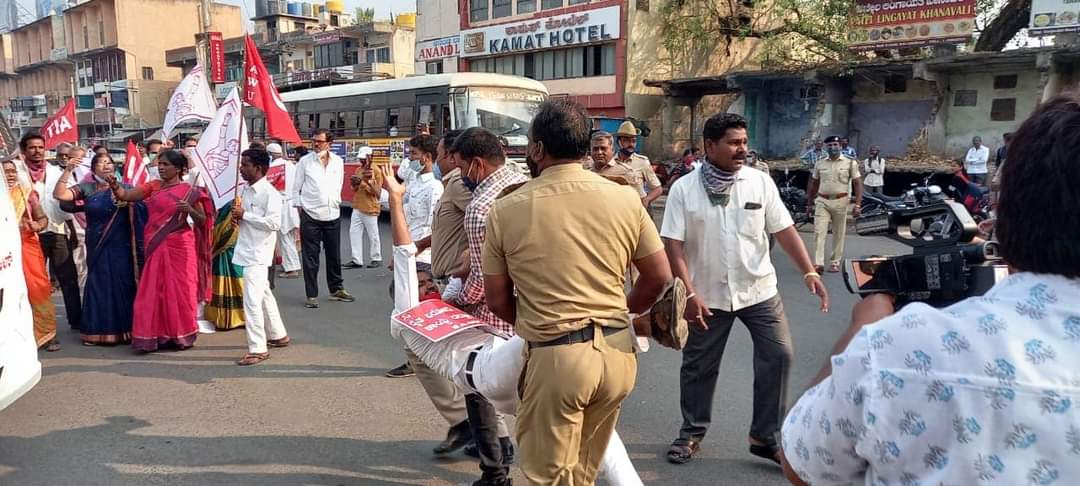 ರಾಜ್ಯದಲ್ಲಿ ಉಪಚುನಾವಣೆಗಳಿಗೆ ಕೋವಿಡ್ ಸಮಸ್ಯೆ ಎದುರಾಗಲ್ಲಾ ಅದರ ಬಗ್ಗೆ ನೂರಾರು ಜನ ಗುಂಪಾಗಿ ಪ್ರಾಚಾರ ಬಹಿರಂಗ ಸಭೆ ಸಮಾರಂಭಗಳು ನಡೆಸುತ್ತಾರೆ. ಆದರೆ ಬಂಧನ ಮಾಡಿ ಹೋರಾಟ ಹತ್ತಿಕ್ಕುವ ಸಂಚಿಗೆ ಬಗ್ಗುವದಿಲ್ಲ. ಮುಂದಿನ ದಿನಗಳಲ್ಲಿ ಉಗ್ರ ಸ್ವರೂಪದ ಹೋರಾಟಕ್ಕೆ ಸಜ್ಜಾಗಲು ಕರೆ ನೀಡುವುದಾಗಿ ಸಂಯುಕ್ತ ಕಿಸಾನ್ ಮೋರ್ಚಾದ ಸಂಚಾಲಕರಾದ ಶರಣ ಬಸಪ್ಪ ತಿಳಿಸಿದ್ದಾರೆ.