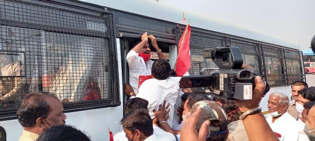 ಕಲಬುರಗಿ: ನೂತನ ಕಾಯ್ದೆಗಳ ವಿರುದ್ಧ ಇಂದು ಸಂಯುಕ್ತ ಕಿಸಾನ್ ಮೋರ್ಚಾ ಭಾರತ್ ಬಂದ್ ಗೆ ಕರೆ ನೀಡಿದ್ದು, ಕಲಬುರಗಿಯಲ್ಲಿ ಸಂಯುಕ್ತ ಕಿಸಾನ್ ಮೋರ್ಚಾದಿಂದ ಜಿಲ್ಲಾ ಸಮಿತಿ ಬೆಂಬಲವಾಗಿ ಕಲಬುರಗಿ ಜಿಲ್ಲೆಯಿಂದ ವಿವಿಧ ಸಂಸ್ಥೆ ಕಚೇರಿಗಳ ಸ್ಥಳಾಂತರ ವಿರೋಧಿಸಿ ಬಂದ್ ಕರೆ ನೀಡಿ ಹೋರಾಟ ನಡೆಸುತ್ತಿದ್ದ ವಿವಿಧ ಸಂಘಟನೆಗಳ ಸುಮಾರು 30ಕ್ಕೂ ಹೆಚ್ಚು ಹೋರಾಟಗಾರರನ್ನು ಬಂಧಿಸಿದ್ದಾರೆ.