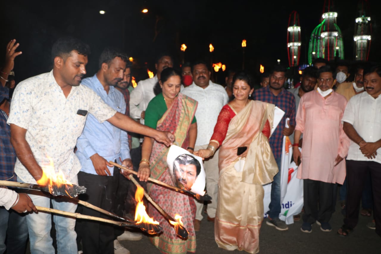 ರಮೇಶ್ ಜಾರಕಿಹೊಳಿ ಬಂಧನಕ್ಕೆ ಪಟ್ಟು: ರಾಜ್ಯದ ಹಲವೆಡೆ ಪಂಜಿನ ಮೆರವಣಿಗೆ, ಪ್ರತಿಕೃತಿ ದಹನ