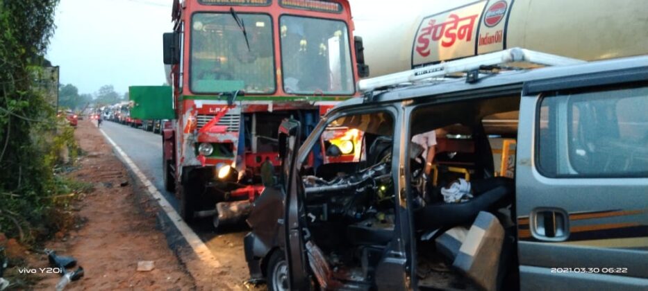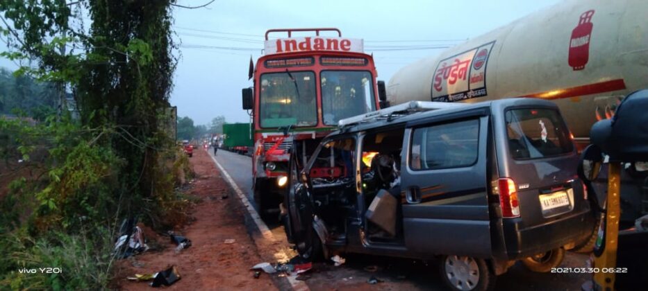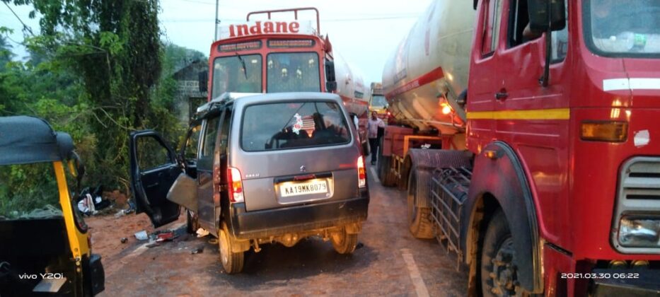 ಪಾಣೆಮಂಗಳೂರು : ಕಾರಿಗೆ ಗ್ಯಾಸ್ ಟ್ಯಾಂಕರ್ ಢಿಕ್ಕಿ; ಆರು ಮಂದಿಗೆ ಗಾಯ
