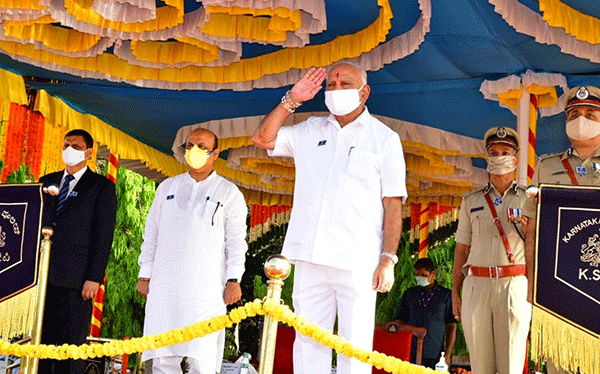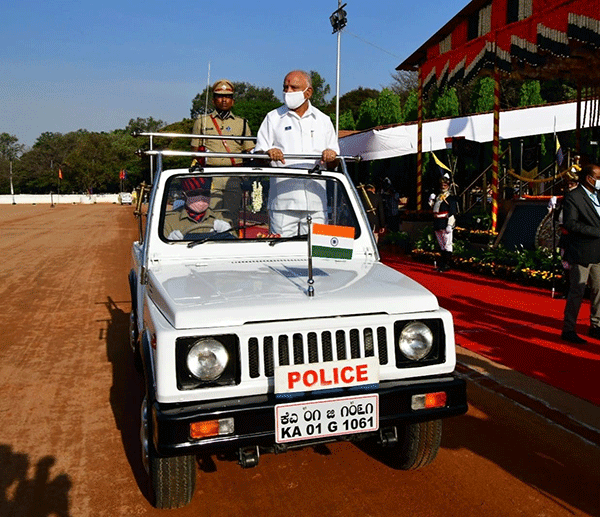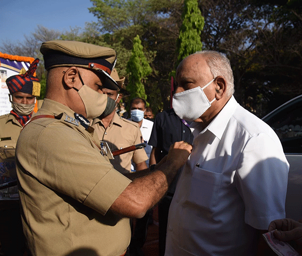 ಬೆಂಗಳೂರು, ಎ.2: ಮುಖ್ಯಮಂತ್ರಿ ಬಿ.ಎಸ್.ಯಡಿಯೂರಪ್ಪ ಇಂದು ಪೊಲೀಸ್ ಧ್ವಜ ದಿನಾಚರಣೆ ಕಾರ್ಯಕ್ರಮದಲ್ಲಿ ಭಾಗವಹಿಸಿ, ಗೌರವರಕ್ಷೆ ಸ್ವೀಕರಿಸಿದರು.