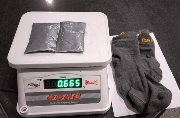 ಕಾಸರಗೋಡು ಮೂಲದ ಅಬೂಬಕರ್ ಸಿದ್ದೀಕ್ ಪುಲಿಕೂರ್ ಮುಹಮ್ಮದ್ ಎಂಬ ಪ್ರಯಾಣಿಕ ಈ ಚಿನ್ನ ಅಕ್ರಮ ಸಾಗಾಟದ ಆರೋಪಿಯಾಗಿದ್ದಾನೆ. ಈತ ದುಬೈಯಿಂದ ಏರ್ ಇಂಡಿಯಾ ವಿಮಾನದಲ್ಲಿ ಮಂಗಳೂರಿಗೆ ಆಗಮಿಸಿದ್ದಾನೆ. ಮಂಗಳೂರು ವಿಮಾನ ನಿಲ್ದಾಣದಲ್ಲಿ ತಪಾಸಣೆಯ ವೇಳೆ ಈತ ಸಾಕ್ಸ್ ನೊಳಗೆ ಅರ್ಧ ಕೆ.ಜಿ. ಚಿನ್ನವನ್ನು ಬಚ್ಚಿಟ್ಟಿರುವುದು ಪತ್ತೆಯಾಗಿದೆ. ಅವುಗಳ ಮೌಲ್ಯ 23.44 ಲಕ್ಷ ರೂ. ಎಂದು ಅಧಿಕಾರಿಗಳು ತಿಳಿಸಿದ್ದಾರೆ.
