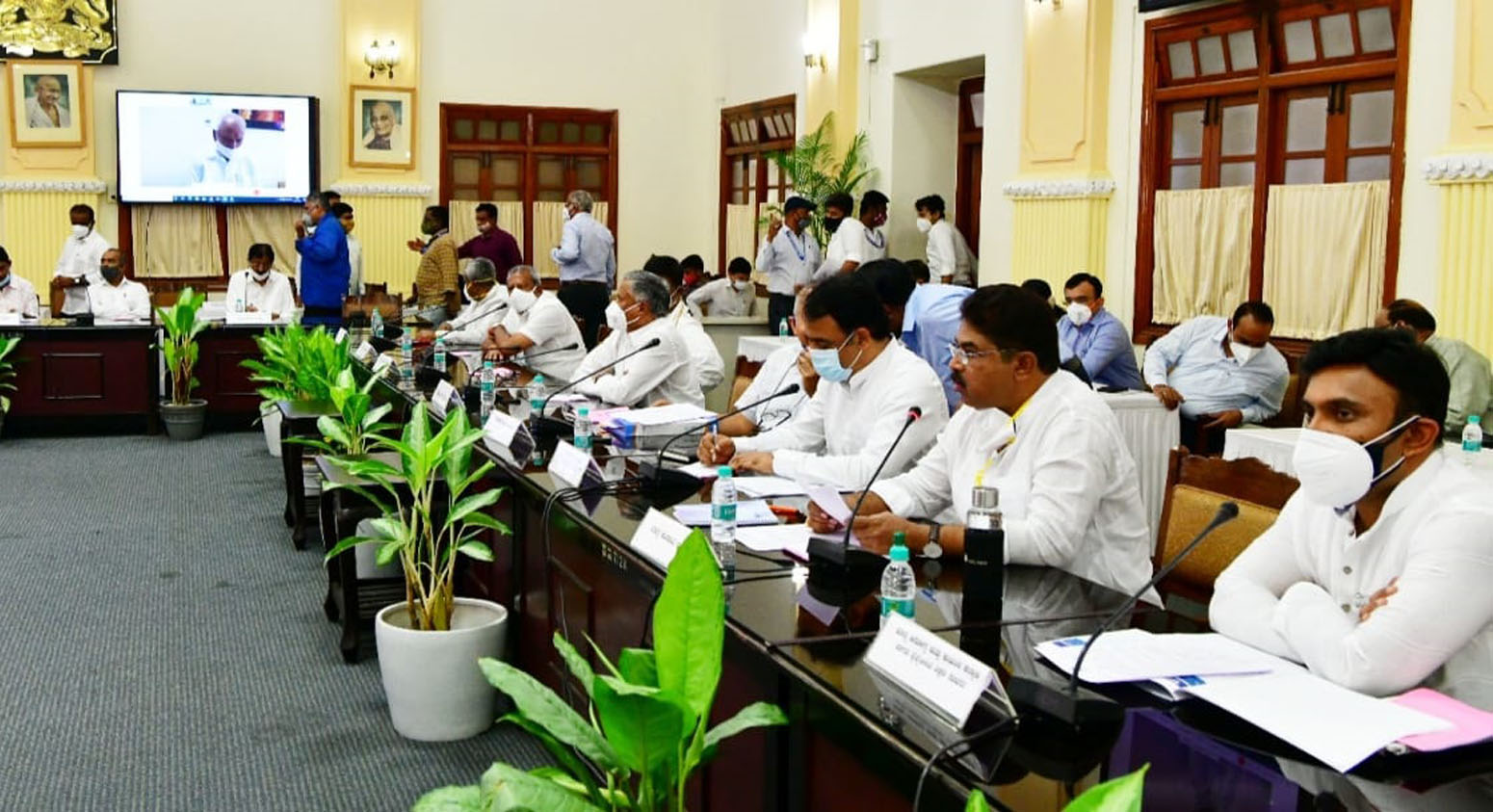ಕೋವಿಡ್ ಸೋಂಕಿಗೆ ತುತ್ತಾಗಿರುವ ಹಿನ್ನೆಲೆಯಲ್ಲಿ ನಗರದ ಖಾಸಗಿ ಆಸ್ಪತ್ರೆಯಲ್ಲಿ ಚಿಕಿತ್ಸೆ ಪಡೆಯುತ್ತಿರುವ ಮುಖ್ಯಮಂತ್ರಿ, ವಿಡಿಯೋ ಕಾನ್ಫರೆನ್ಸ್ ಮೂಲಕ ವಿಧಾನಸೌಧದ ಸಮ್ಮೇಳನ ಸಭಾಂಗಣದಲ್ಲಿ ನಡೆದ ಬೆಂಗಳೂರಿನ ಶಾಸಕರು, ಸಚಿವರು, ಸಂಸದರ ಸಭೆಯಲ್ಲಿ ಪಾಲ್ಗೊಂಡು ಮಾತನಾಡಿದರು.