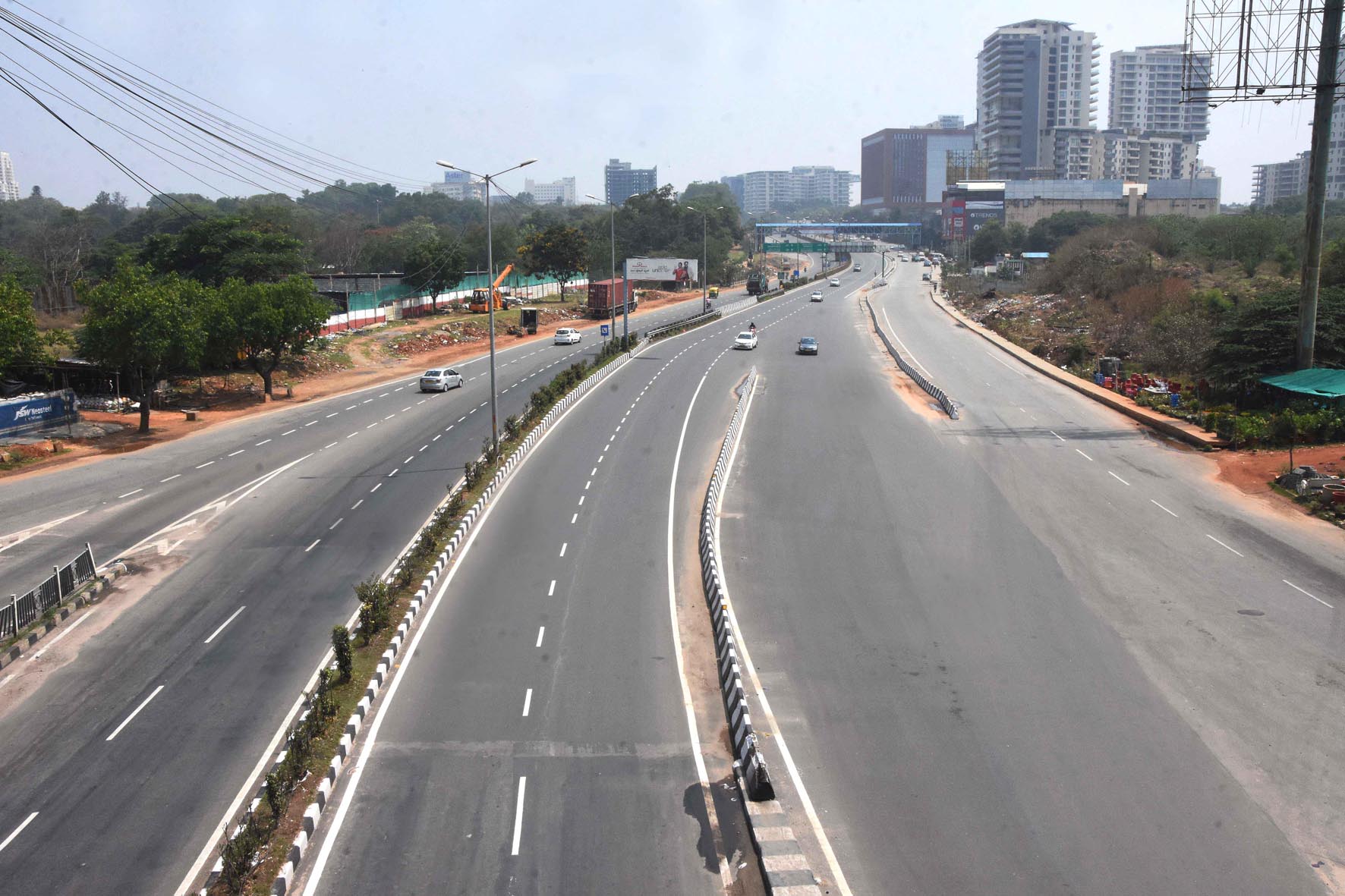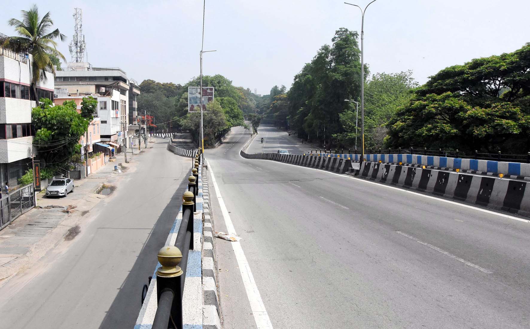 ವಾಹನ ಸಂಚಾರ ಇಲ್ಲ: ಖಾಸಗಿ ಬಸ್ಗಳು, ಟ್ಯಾಕ್ಸಿಗಳು ಹೆಚ್ಚಾಗಿ ರಸ್ತೆಗೆ ಇಳಿಯಲಿಲ್ಲ. ಕಫ್ರ್ಯೂ ಸಡಿಲಿಕೆಯ ಅವಧಿಯಲ್ಲಿ ಕೆಲವು ಆಟೊಗಳು ಓಡಾಡುತ್ತಿದ್ದವು. 10 ಗಂಟೆಯ ನಂತರ ಅವುಗಳು ಕೂಡ ಇರಲಿಲ್ಲ. ಇನ್ನು, ಕೆಎಸ್ಸಾರ್ಟಿಸಿ ಬಸ್ಗಳು ಇದ್ದರೂ, ಪ್ರಯಾಣಿಕರು ಇರಲಿಲ್ಲ.