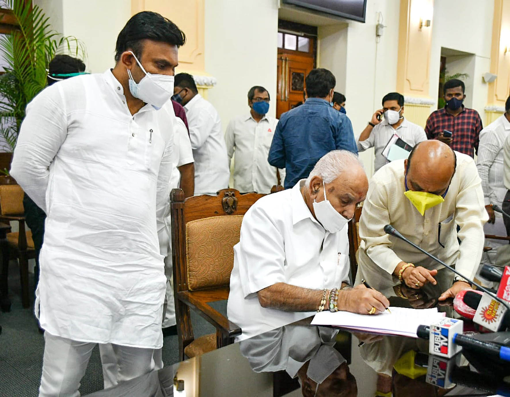 ಆರು ತಿಂಗಳು ಎಲ್ಲ ಚುನಾವಣೆ ಮುಂದೂಡಿಕೆ: `ಕೋವಿಡ್ ಸೋಂಕು ಹರಡುವುದನ್ನು ತಡೆಗಟ್ಟುವ ದೃಷ್ಟಿಯಿಂದ ರಾಜ್ಯದಲ್ಲಿ ಬಳ್ಳಾರಿ ಮಹಾನಗರ ಪಾಲಿಕೆ ಸೇರಿ ಹತ್ತು ನಗರ ಸ್ಥಳೀಯ ಸಂಸ್ಥೆಗಳನ್ನು ಹೊರತುಪಡಿಸಿ ಕನ್ನಡ ಸಾಹಿತ್ಯ ಪರಿಷತ್ (ಕಸಾಪ) ಸೇರಿದಂತೆ ಇನ್ನೂ ಆರು ತಿಂಗಳು ಯಾವುದೇ ಚುನಾವಣೆಗಳನ್ನು ನಡೆಸದಂತೆ ಚುನಾವಣಾ ಆಯೋಗಕ್ಕೆ ಶಿಫಾರಸ್ಸು ಮಾಡಲು ಸಚಿವ ಸಂಪುಟ ಸಭೆ ತೀರ್ಮಾನಿಸಿದೆ' ಎಂದು ಯಡಿಯೂರಪ್ಪ ಸ್ಪಷ್ಟಪಡಿಸಿದರು.