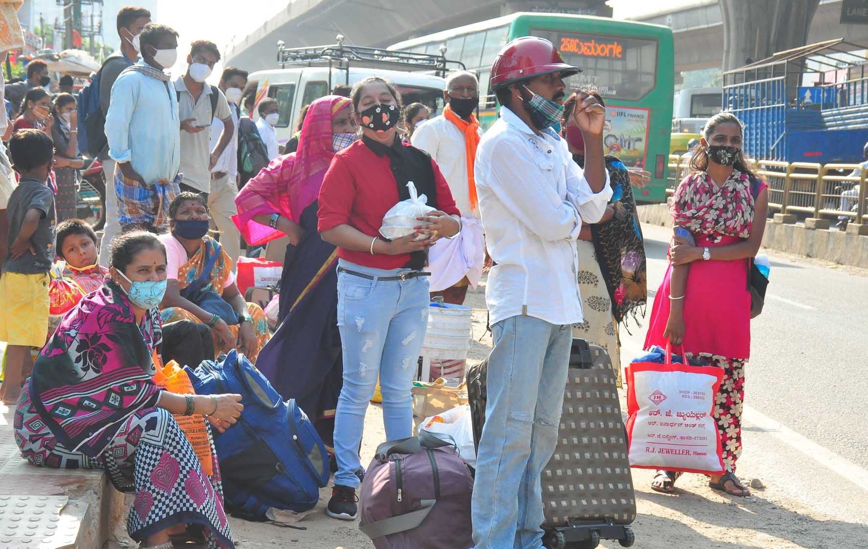 ಬೆಂಗಳೂರಿನಲ್ಲಿ ಕೊರೋನ ಸೋಂಕು ಮತ್ತು ಸಾವಿನ ಸಂಖ್ಯೆ ಉಲ್ಬಣಿಸುತ್ತಿದ್ದು, ಸರಕಾರ ಕಠಿಣ ನಿಯಮಗಳನ್ನು ಜಾರಿಗೊಳಿಸುತ್ತಿದೆ ಎಂಬ ಹಿನ್ನೆಲೆಯಲ್ಲಿ ಬದುಕು ಕಟ್ಟಿಕೊಳ್ಳಲು ನಗರಕ್ಕೆ ಬಂದಿದ್ದ ಜನ ಈಗ ಮತ್ತೆ ತಮ್ಮ ತಮ್ಮ ಊರುಗಳ ಕಡೆಗೆ ಮುಖ ಮಾಡುತ್ತಿದ್ದಾರೆ. ಕಳೆದ ಬಾರಿ ಏಕಾಏಕಿ ಲಾಕ್ಡೌನ್ ಘೋಷಣೆಯಾದಾಗ ತಮ್ಮ ಊರುಗಳಿಗೆ ತಲುಪಲು ಸಾಧ್ಯವಾಗದೆ ತಮ್ಮ ಮಕ್ಕಳೊಂದಿಗೆ ನೂರಾರು ಕಿ.ಮೀ ನಡೆದೆ ಹೋಗಿದ್ದರು. ಕೆಲಸವಿಲ್ಲದೆ ಆಹಾರದ ಅಭಾವದಿಂದ ಎಷ್ಟೋ ಜನ ನಲುಗಿದ್ದರು. ಈಗ ಮತ್ತೆ ಕೊರೋನ ಸೋಂಕು ಹೆಚ್ಚಾಗುತ್ತಿದೆ. ಸಾವಿನ ಪ್ರಮಾಣವು ಹೆಚ್ಚಾಗುತ್ತಿದೆ. ಜೀವ ಇದ್ದರೆ ಜೀವನ ಮಾಡಬಹುದು ಎಂದು ತಮ್ಮ ತಮ್ಮ ಊರುಗಳಿಗೆ ತೆರಳಲು ಮುಂದಾಗುತ್ತಿದ್ದಾರೆ.
