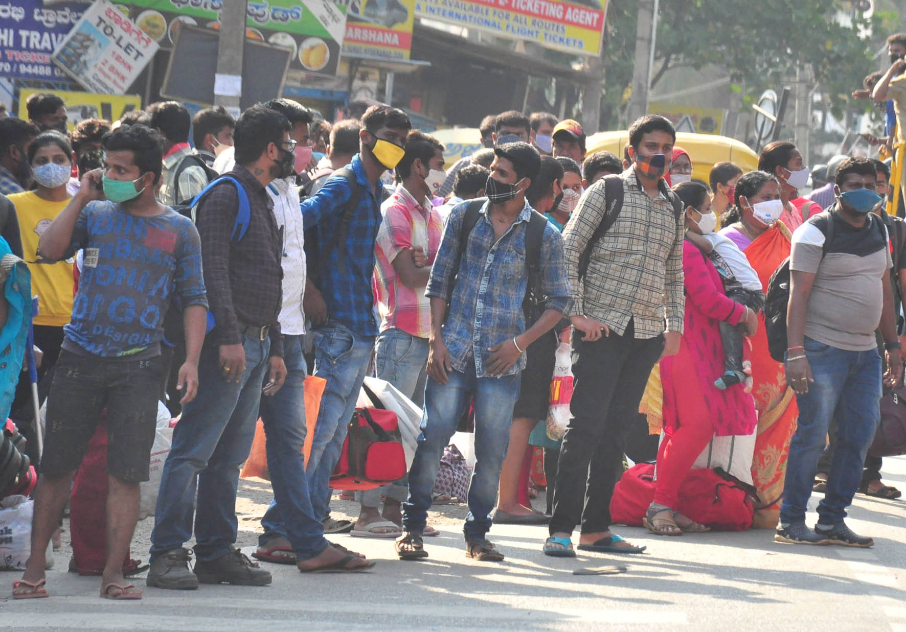 ಕೊರೋನ ಕರ್ಫ್ಯೂ: ಉದ್ಯೋಗ ಅರಸಿ ಬೆಂಗಳೂರಿಗೆ ಬಂದಿದ್ದ ಕಾರ್ಮಿಕರು ಮತ್ತೆ ಊರಿನತ್ತ