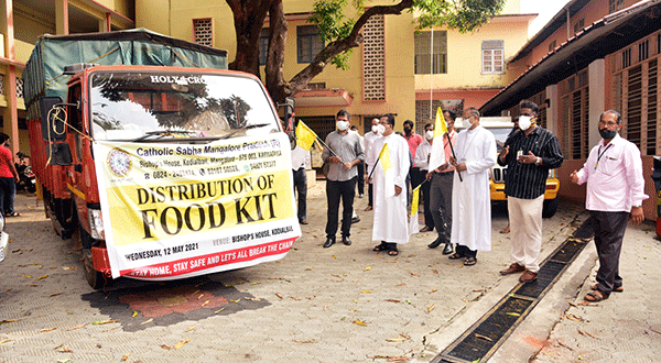ಮಂಗಳೂರು, 12: ಕೆಥೊಲಿಕ್ ಸಭಾ ಮಂಗಳೂರು ಪ್ರದೇಶದ ಆಶ್ರಯದಲ್ಲಿ ಮಂಗಳೂರು ಕ್ರೈಸ್ತ ಧರ್ಮಪ್ರಾಂತದ 124 ಧರ್ಮ ಕ್ಷೇತ್ರಗಳಿಗೆ ಆಹಾರ ಕಿಟ್ ವಿತರಣೆ ಕಾರ್ಯಕ್ರಮಕ್ಕೆ ಬುಧವಾರ ಕೊಡಿಯಾಲ್ಬೈಲಿನ ಬಿಷಪ್ ಹೌಸ್ ಪ್ರಾಂಗಣದಲ್ಲಿ ಚಾಲನೆ ನೀಡಲಾಯಿತು.