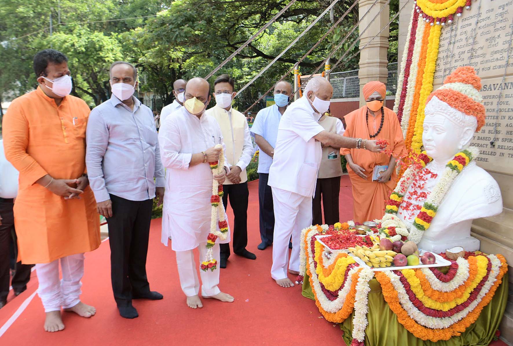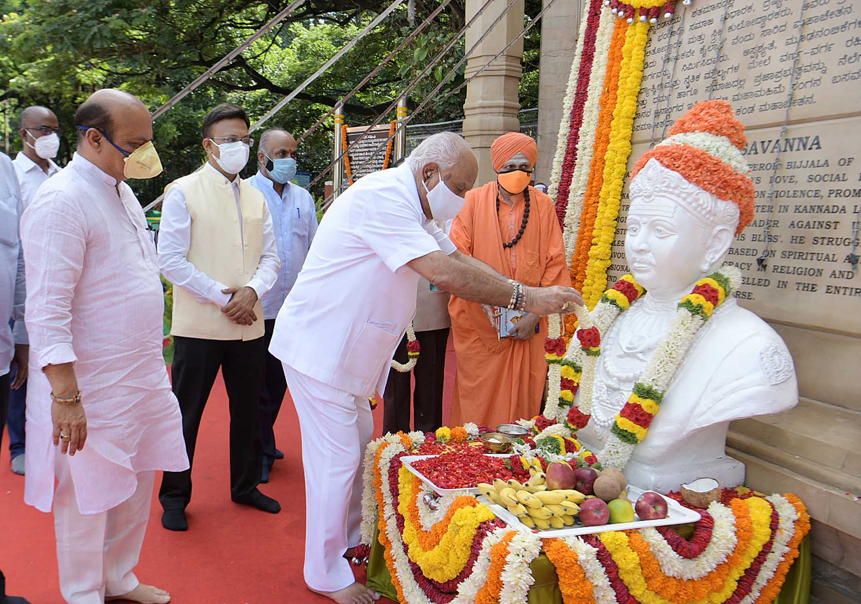 ಕನ್ನಡ ಸಾಹಿತ್ಯಕ್ಕೆ ಕೊಡುಗೆ: ಮನವತಾವಾದಿ ಬಸವಣ್ಣನವರು ಕನ್ನಡ ಸಾಹಿತ್ಯಕ್ಕೆ 1,500ಕ್ಕೂ ಅಧಿಕ ವಚನಗಳನ್ನು ನೀಡುವ ಮೂಲಕ ವಿಶಿಷ್ಟ ಕೊಡುಗೆಯನ್ನು ನೀಡಿದ್ದಾರೆ. ಅವರ ತತ್ವಗಳನ್ನು ಅನುಸರಿಸುವ ಮೂಲಕ ಅವರ ಆಶಯಗಳನ್ನು ನಾವೆಲ್ಲರೂ ಸಾಕಾರಗೊಳಿಸಬೇಕು. ಹನ್ನೆರಡನೆ ಶತಮಾನದಲ್ಲಿ ಆಧುನಿಕ ಸಂಸತ್ ಎಂಬ ಹೆಗ್ಗಳಿಕೆಗೆ ಪಾತ್ರವಾದ ಅನುಭವ ಮಂಟಪವನ್ನು ಸ್ಥಾಪಿಸಿದರು ಎಂದು ಯಡಿಯೂರಪ್ಪ ಸ್ಮರಿಸಿದರು.