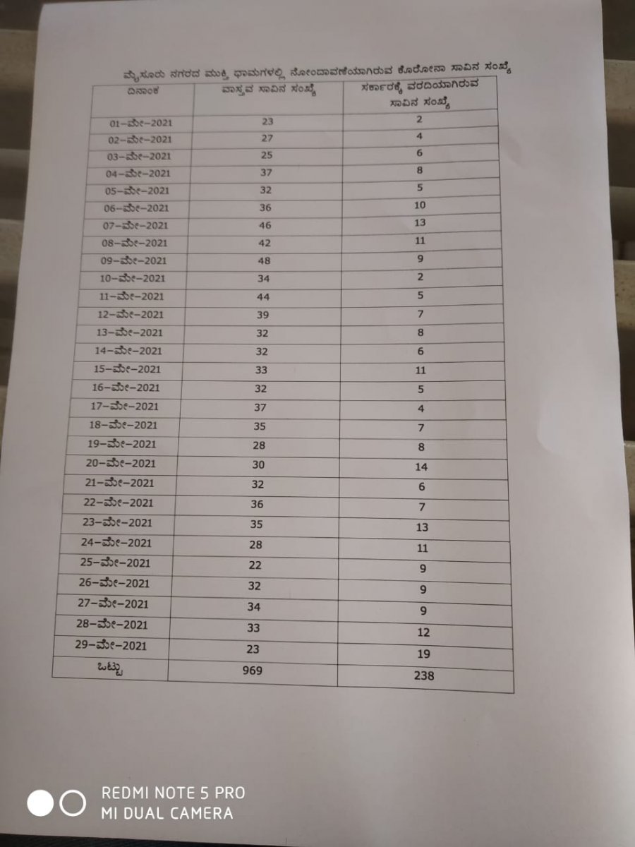 ನಗರದ ಅವರ ಕಚೇರಿಯಲ್ಲಿ ಸೋಮವಾರ ಪತ್ರಿಕಾಗೋಷ್ಠಿ ನಡೆಸಿ ಮಾತನಾಡಿದ ಅವರು, ಮೇ ತಿಂಗಳ ಒಂದರಲ್ಲಿಯೇ ಮೈಸೂರು ನಗರದ ಮುಕ್ತಿಧಾಮಗಳಲ್ಲಿ ನೋಂದಣಿಯಾಗಿರುವ ಪ್ರಕಾರ 969 ಸಾವುಗಳ ಸಂಭವಿಸಿವೆ. ಆದರೆ ಜಿಲ್ಲಾಡಳಿತ ನೀಡಿರುವ ಲೆಕ್ಕ ಮಾತ್ರ 238. ಒಟ್ಟಾರೆ ಜಿಲ್ಲೆಯಾದ್ಯಂತ ಸುಮಾರು 3 ಸಾವಿರಕ್ಕಿಂತಲೂ ಹೆಚ್ಚು ಸಾವುಗಳು ಸಂಭವಿಸಿದೆ. ಇಷ್ಟಿದ್ದರು ಯಾಕೆ ಜಿಲ್ಲಾಧಿಕಾರಿಗಳು ಸರ್ಕಾರಕ್ಕೆ ಸುಳ್ಳು ಲೆಕ್ಕನೀಡಿದ್ದಾರೆ ಎಂದು ಪ್ರಶ್ನಿಸಿದರು.