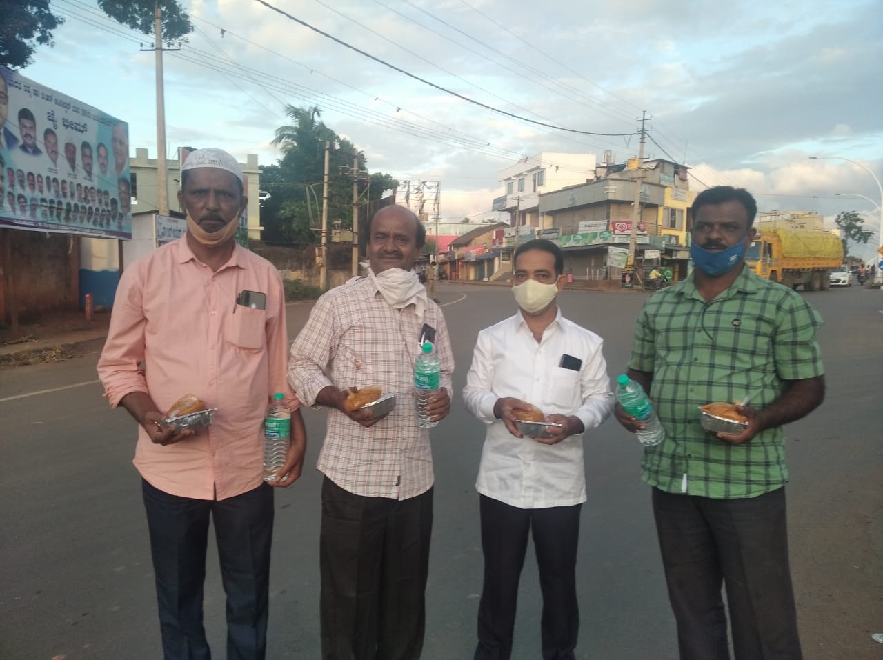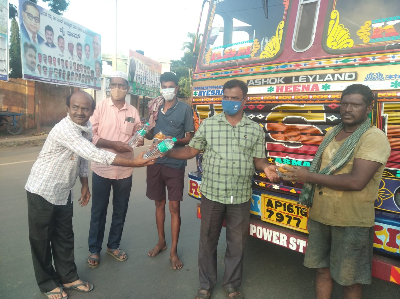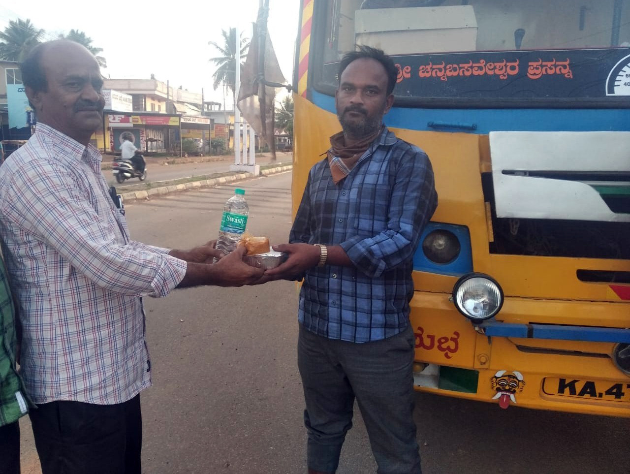 ಕೋವಿಡ್ ನಿಯಮಗಳನ್ನು ಪಾಲಿಸಿಕೊಂಡು ಲಾರಿ ಚಾಲಕರು, ಕ್ಲೀನರ್ಗಳಿಗೆ ಊಟ ತಿಂಡಿ ಪೊಟ್ಟಣಗಳು, ನೀರಿನ ಬಾಟಲಿಗಳನ್ನು ನೀಡುವ ಸೇವೆ ಹಲವುದಿನಗಳಿಂದ ಕೈಗೊಂಡಿದ್ದಾರೆ. ತಂದೆಯ ಸೇವೆಗೆ ಪುತ್ರರು ಕೂಡ ಕೈ ಜೋಡಿಸಿದ್ದಾರೆ.