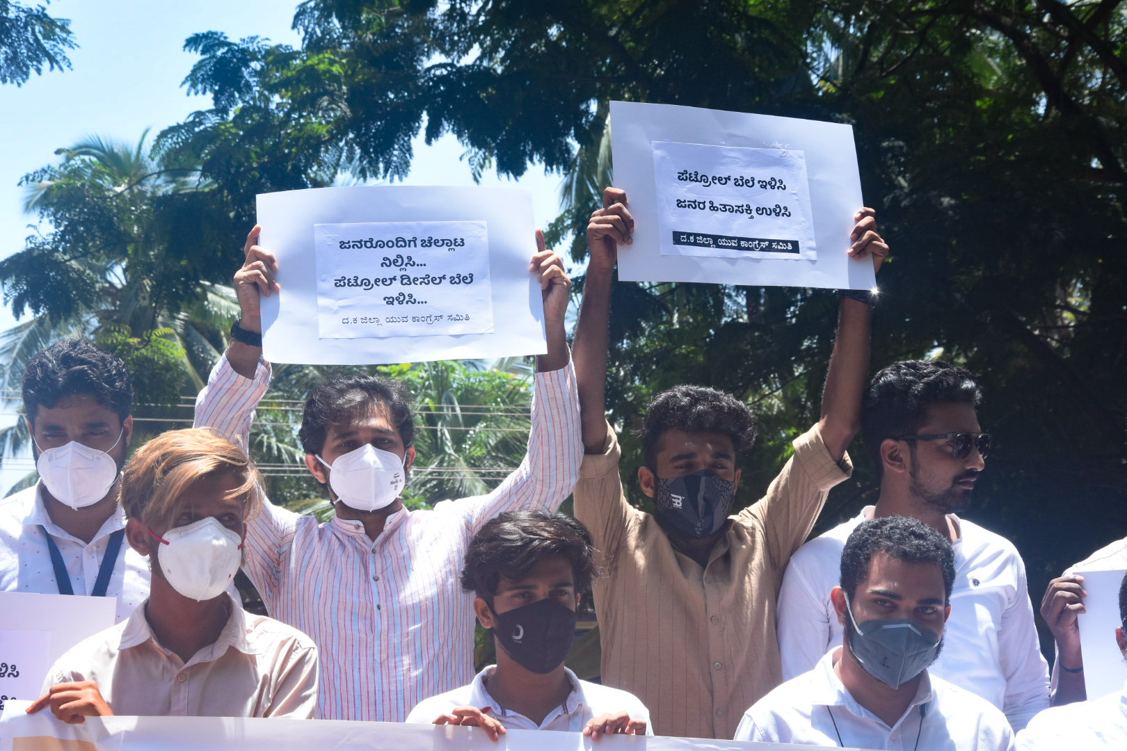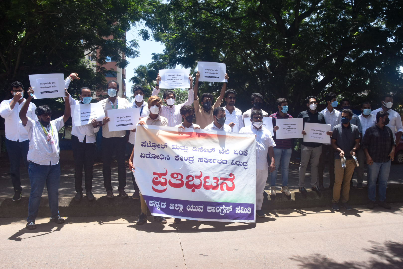 ಪೆಟ್ರೋಲ್, ಡೀಸೆಲ್ ಬೆಲೆ ಏರಿಕೆ ವಿರೋಧಿಸಿ ದ.ಕ. ಜಿಲ್ಲಾ ಯುವ ಕಾಂಗ್ರೆಸ್ ಪ್ರತಿಭಟನೆ