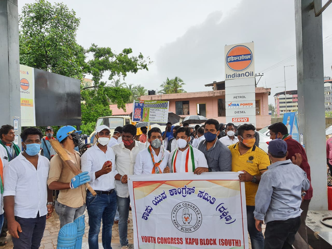ಕಾಪು : ಪೆಟ್ರೋಲ್ - ಡೀಸೆಲ್ ಬೆಲೆ ಏರಿಕೆ ವಿರೋಧಿಸಿ ಪ್ರತಿಭಟನೆ