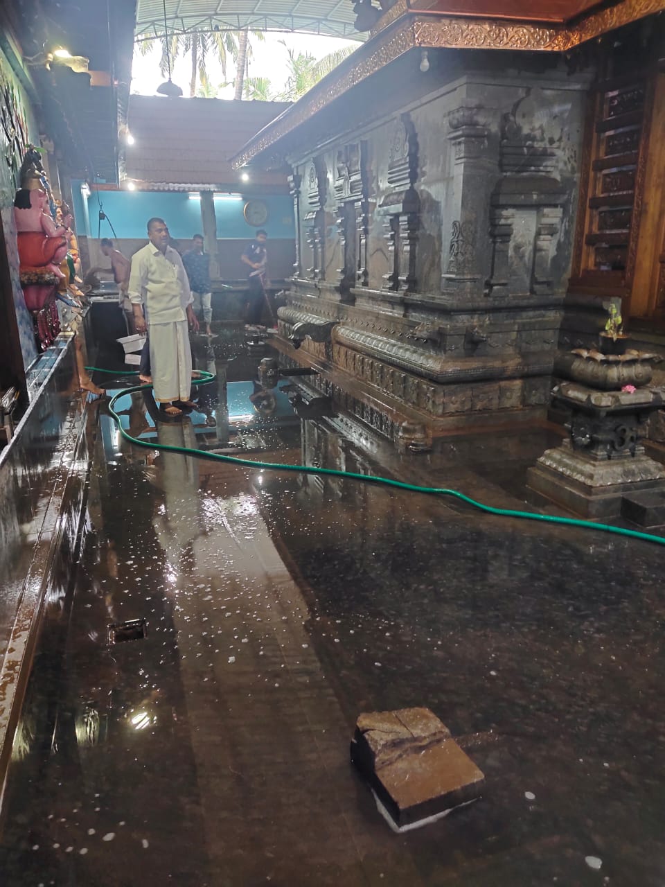 ದೇವಸ್ಥಾನದ ಒಳಭಾಗದಲ್ಲಿ ಮಳೆ ನೀರು ತುಂಬಿದ್ದು ದೇವಾಲಯದ ಅರ್ಚಕರು ಹಾಗೂ ಆಡಳಿತ ಸಮಿತಿ ಕಂಗಾಲಾಗಿದೆ. ಘಟನಾ ಸ್ಥಳಕ್ಕೆ ಪುದು ಗ್ರಾಮ ಪಂಚಾಯತ್ ಅಧ್ಯಕ್ಷ ರಮ್ಲಾನ್ ಮಾರಿಪಳ್ಳ ಹಾಗೂ ಪಿಡಿಒ ಹರೀಶ್ ಕೆ.ಎ. ಅವರು ಮಂಗಳವಾರ ಭೇಡಿ ನೀಡಿ ಪರಿಶೀಲನೆ ನಡೆಸಿದರು.