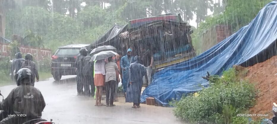 ಬಂಟ್ವಾಳ : ರಸ್ತೆ ಬದಿಯ ಬರೆಗೆ ಢಿಕ್ಕಿ ಹೊಡೆದ ಲಾರಿ, ಇಬ್ಬರಿಗೆ ಗಾಯ