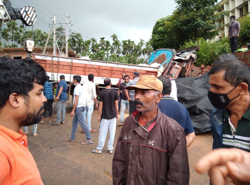 ಶಿವಮೊಗ್ಗ ಜಿಲ್ಲೆಯಿಂದ ಪುತ್ತೂರಿಗೆ ಅಕ್ಕಿ ಚೀಲಗಳನ್ನು ತುಂಬಿಸಿಕೊಂಡು ಹೋಗುತ್ತಿದ್ದ ಲಾರಿ ಬಂಟ್ವಾಳ ಎಸ್.ವಿ.ಎಸ್. ವಿದ್ಯಾಗಿರಿ ಶಾಲೆ ಬಳಿ ಚಾಲಕನ ನಿಯಂತ್ರಣ ತಪ್ಪಿ ರಸ್ತೆ ಬದಿಯ ಬರೆಗೆ ಢಿಕ್ಕಿಹೊಡೆದಿದೆ. ಢಿಕ್ಕಿಯ ರಭಸಕ್ಕೆ ಲಾರಿ ಚಾಲಕ ಹಾಗೂ ನಿರ್ವಾಹಕನಿಗೆ ಗಾಯಗಳಾಗಿದ್ದು ಮಂಗಳೂರು ಖಾಸಗಿ ಆಸ್ಪತ್ರೆಗೆ ದಾಖಲಿಸಲಾಗಿದೆ.