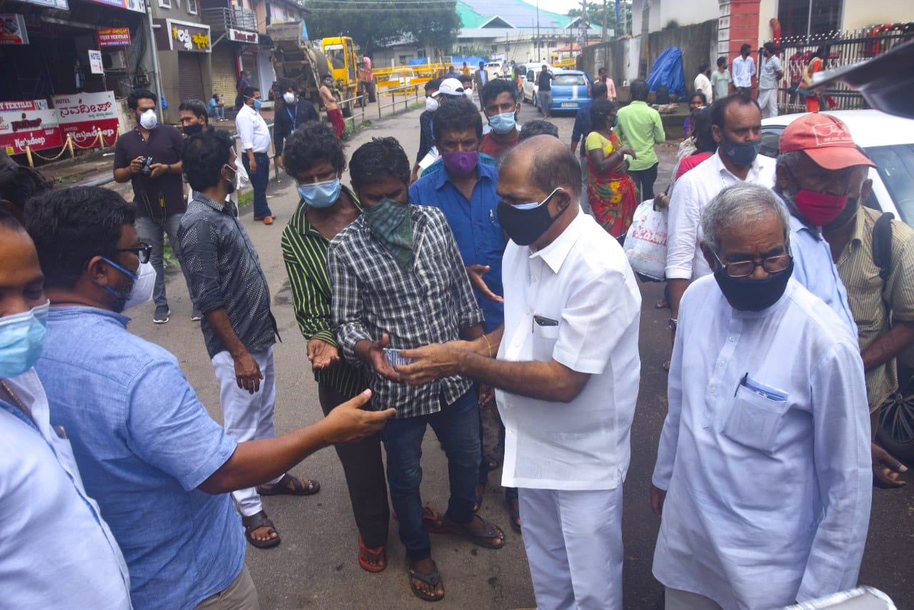 ಮಂಗಳೂರು : ದ.ಕ. ಜಿಲ್ಲಾ ಯುವ ಕಾಂಗ್ರೆಸ್ ಸಮಿತಿ ಅಧ್ಯಕ್ಷ ಲುಕ್ಮಾನ್ ಬಂಟ್ವಾಳ್ ಅವರ ನೇತೃತ್ವದಲ್ಲಿ ಕಳೆದ 50 ದಿನಗಳಿಂದ ನಡೆಯುತ್ತಿರುವ ಊಟ ವಿತರಣೆಯು ಇಂದು ನಗರದ ನಿರ್ಗತಿಕರಿಗೆ, ಭಿಕ್ಷುಕರಿಗೆ ಹಾಗೂ ಆಸ್ಪತ್ರೆಯಲ್ಲಿರುವ ಕೋವಿಡ್ ರೋಗಿಗಳ ಸಂಬಂಧಿಕರಿಗೆ ಸೇರಿದಂತೆ ಸುಮಾರು 600ಕ್ಕೂ ಅಧಿಕ ಮಂದಿಗೆ ವಿತರಿಸಲಾಯಿತು.