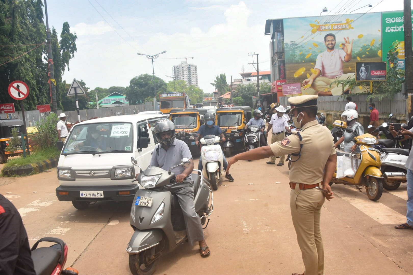 ನಗರದ ಪುರಭವನದ ಎದುರಿನಿಂದ ಕ್ಲಾಕ್ ಟವರ್ಗೆ ಸಾಗುವ ರಸ್ತೆಯಲ್ಲಿ ಸ್ಮಾರ್ಟ್ ಸಿಟಿ ಕಾಮಗಾರಿಯಡಿ ನಡೆಯುತ್ತಿರುವುದರಿಂದ ಒಂದು ರಸ್ತೆಯಲ್ಲಿ ಮಾತ್ರ ಸಂಚಾರಕ್ಕೆ ಅವಕಾಶ ಇರುವ ಕಾರಣ ಪೊಲೀಸರ ತಪಾಸಣೆ ವೇಳೆ ವಾಹನಗಳು ಈ ರಸ್ತೆಯುದ್ದಕ್ಕೂ ವಾಹನಗಳು ಸಾಲುಗಟ್ಟಿ ನಿಲ್ಲಬೇಕಾಯಿತು.