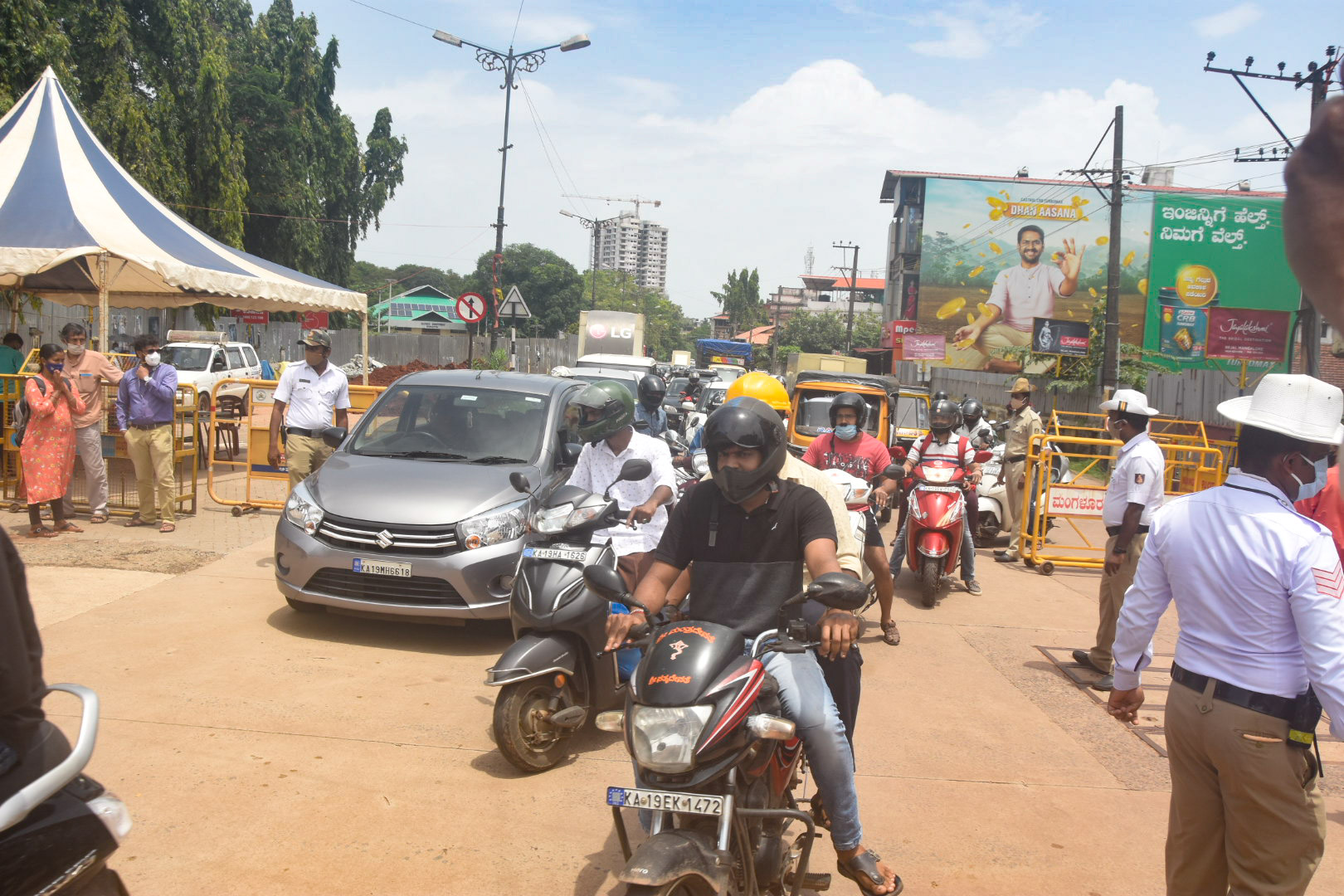 ಮಂಗಳೂರು, ಜೂ. 22: ಕಳೆದ ಕೆಲ ದಿನಗಳಿಂದ ನಗರದಲ್ಲಿ ಲಾಕ್ಡೌನ್ ವಿನಾಯಿತಿ ಅವಧಿಯಲ್ಲಿ ವಾಹನಗಳ ದಟ್ಟಣೆ ಕಂಡು ಬರುತ್ತಿದ್ದ ಹಿನ್ನೆಲೆಯಲ್ಲಿ ಇಂದು ನಗರದ ಕ್ಲಾಕ್ ಟವರ್ ಬಳಿ ಹಿರಿಯ ಅಧಿಕಾರಿಗಳ ನೇತೃತ್ವದಲ್ಲಿ ಪೊಲೀಸರು ದಿಢೀರ್ ತಪಾಸಣೆ ನಡೆಸಿದರು.