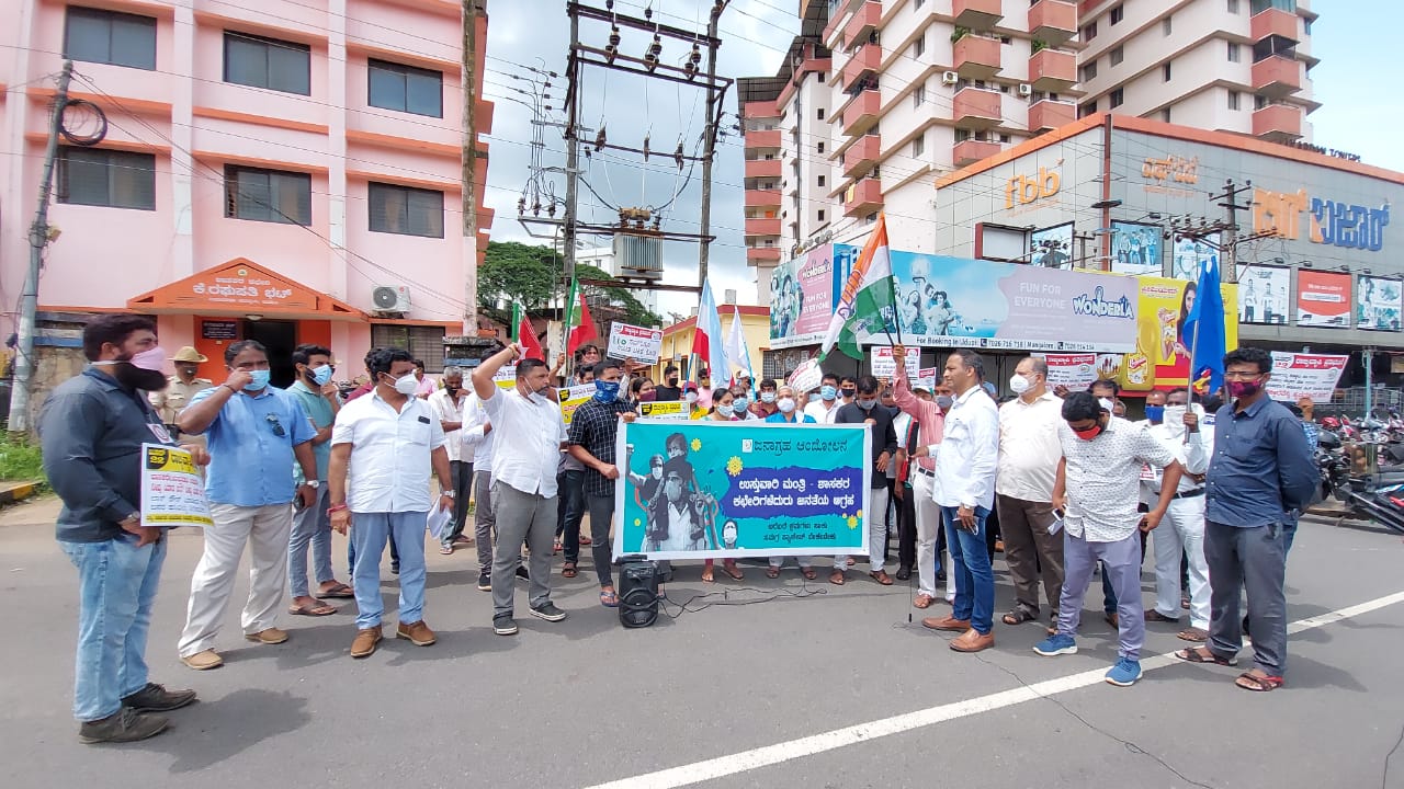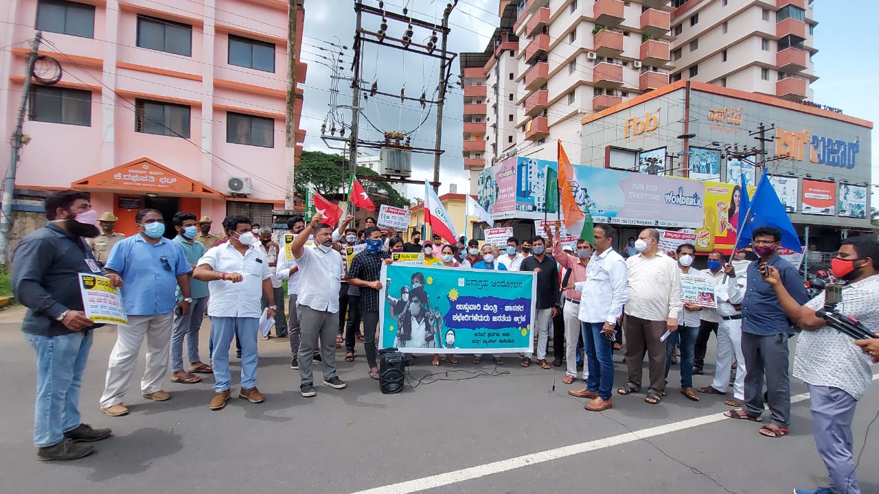 ಉಡುಪಿ, ಜೂ.22: ಕೋವಿಡ್ ನಿಯಂತ್ರಿಸುವಲ್ಲಿ ರಾಜ್ಯ ಹಾಗೂ ಕೇಂದ್ರ ಸರಕಾರದ ವೈಫಲ್ಯತೆ ಖಂಡಿಸಿ ಹಾಗೂ ತುರ್ತು ಕ್ರಮ ಗಳಿಗೆ ಮತ್ತು ಸಮಗ್ರ ಪ್ಯಾಕೇಜ್ಗೆ ಆಗ್ರಹಿಸಿ ಜನಾಗ್ರಹ ಆಂದೋಲನದ ನೇತೃತ್ವದಲ್ಲಿ ವಿವಿಧ ರಾಜಕೀಯ ಪಕ್ಷಗಳು, ಸಮಾನ ಮನಸ್ಕ ಸಂಘಟನೆಗಳು ಮಂಗಳವಾರ ಉಡುಪಿ ಶಾಸಕ ಕೆ.ರಘುಪತಿ ಭಟ್ ಕಚೇರಿ ಮುಂದೆ ಪ್ರತಿಭಟನೆ ನಡೆಸಿದವು.