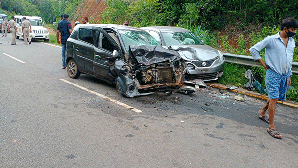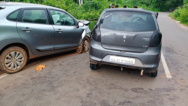 ಎರಡೂ ಕಾರುಗಳ ಮುಂಭಾಗ ಜಖಂಗೊಂಡಿದೆ.
