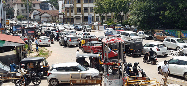 ವಾರಾಂತ್ಯ ಕರ್ಫ್ಯೂ ಹಿನ್ನೆಲೆಯಲ್ಲಿ ಖರೀದಿ ಭರಾಟೆ: ಮಂಗಳೂರಿನ ಪ್ರಮುಖ ರಸ್ತೆಗಳಲ್ಲಿ ಟ್ರಾಫಿಕ್ ಜಾಮ್!