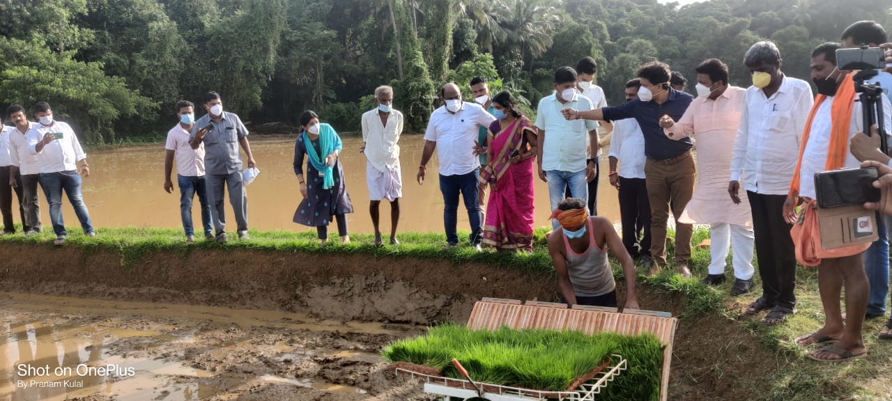 ನಗರದ ಕುಂಜತ್ತಬೈಲ್ ಪ್ರದೇಶದ ಹಡಿಲು ಭೂಮಿಯ ಗದ್ದೆಗಳಲ್ಲಿ ಬತ್ತ ಬೆಳೆಯುವ ಯಾಂತ್ರೀಕೃತ ಬತ್ತ ನಾಟಿ ಕ್ರಷಿ ಯೋಜನೆಗೆ ಅವರಿಂದ ಚಾಲನೆ ನೀಡಿ ಮಾತನಾಡುತ್ತಿದ್ದರು.
