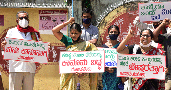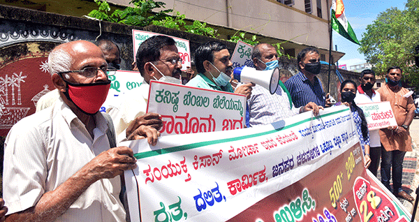 ಮಂಗಳೂರು, ಜೂ. 28: ಕೇಂದ್ರ ಸರಕಾರವು ರೈತ ವಿರೋಧಿ ಕೃಷಿ ಕಾನೂನುಗಳನ್ನು ರದ್ದುಪಡಿಸಬೇಕು ಹಾಗೂ ರೈತರ ಬೇಡಿಕೆಗಳನ್ನು ಮುಂದಿಟ್ಟು ಕೃಷಿಯನ್ನು ಉಳಿಸಿ ಪ್ರಜಾಪ್ರಭುತ್ವ ರಕ್ಷಿಸಿ ಎಂಬ ಘೋಷಣೆಯೊಂದಿಗೆ ದ.ಕ. ಜಿಲ್ಲೆಯ ರೈತ, ದಲಿತ, ಕಾರ್ಮಿಕ, ಜನಪರ ಚಳವಳಿಗಳ ಒಕ್ಕೂಟದಿಂದ ಇಂದು ಧರಣಿ ನಡೆಯಿತು.