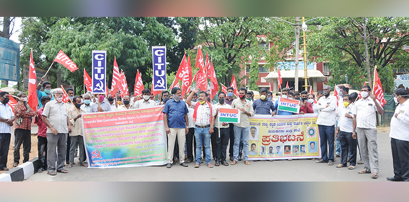 ಕಾರ್ಮಿಕರಿಗೆ ಫುಡ್ ಕಿಟ್ ವಿತರಣೆಯಲ್ಲಿ ಅವ್ಯವಹಾರ ಆರೋಪ: ತನಿಖೆಗೆ ಒತ್ತಾಯಿಸಿ ಧರಣಿ