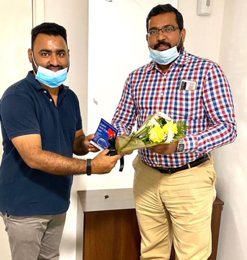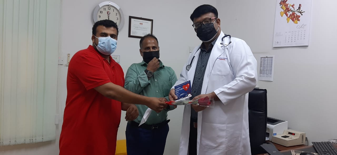 ಮಸ್ಕತ್: ಒಮನ್ ನ ವಿವಿಧ ಆಸ್ಪತ್ರೆಗಳಲ್ಲಿ ಸೇವೆ ಸಲ್ಲಿಸುತ್ತಿರುವ ವೈದ್ಯರನ್ನು ಭೇಟಿ ಮಾಡಿ ಹೂಗುಚ್ಛ ಮತ್ತು ಶುಭಾಶಯ ಪತ್ರಗಳನ್ನು ಹಂಚುವ ಮೂಲಕ ಸೋಶಿಯಲ್ ಫೋರಮ್ ಒಮನ್ ವತಿಯಿಂದ 'ಭಾರತೀಯ ವೈದ್ಯರ ದಿನ'ವನ್ನು ವಿಶಿಷ್ಟವಾಗಿ ಗುರುವಾರ ಆಚರಿಸಲಾಯಿತು.
