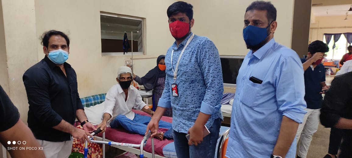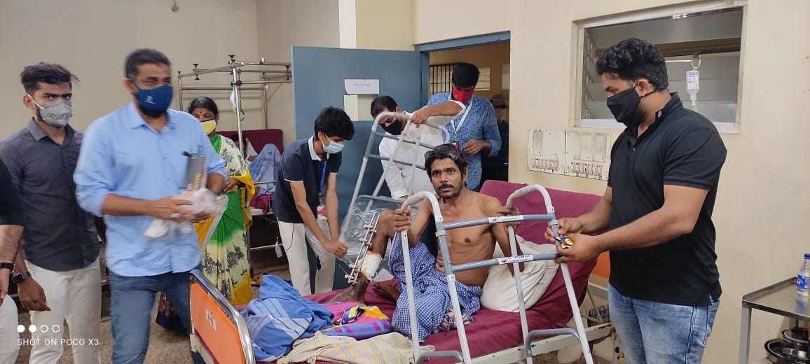 ಟೀಮ್ ಬಿ-ಹ್ಯೂಮನ್ನಿಂದ ವೆನ್ಲಾಕ್ ಆಸ್ಪತ್ರೆಯ ರೋಗಿಗಳಿಗೆ ಸ್ಟೀಲ್ ಸ್ಟಾಂಡ್, ವಾಕರ್ ವಿತರಣೆ
