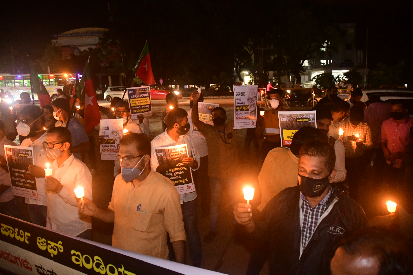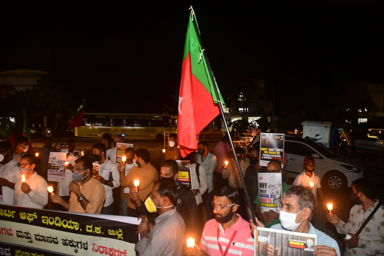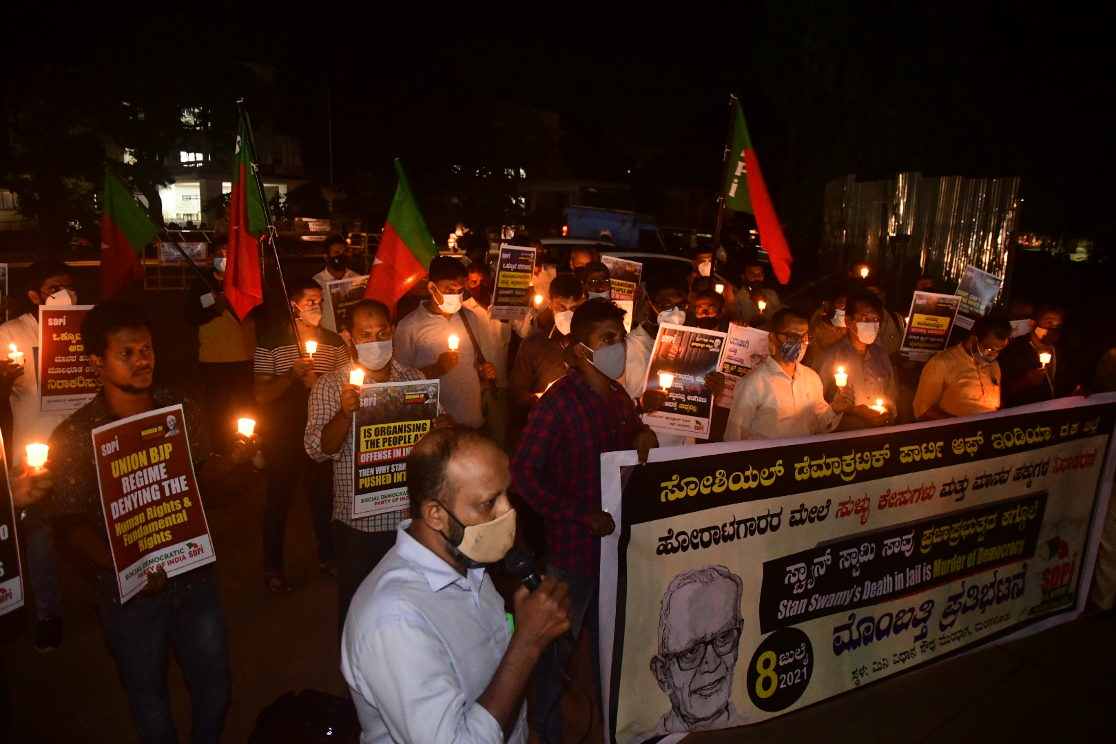 ಮಂಗಳೂರು, ಜು.8: ಜೈಲು ಸೇರಿದ್ದ ಮಾನವ ಹಕ್ಕುಗಳ ಹೋರಾಟಗಾರ ಫಾ. ಸ್ಟಾನ್ ಸ್ವಾಮಿಯ ನಿಧನ ಖಂಡಿಸಿ ಎಸ್ಡಿಪಿಐ ದ.ಕ.ಜಿಲ್ಲಾ ಸಮಿತಿಯ ವತಿಯಿಂದ ನಗರದ ಜಿಲ್ಲಾಧಿಕಾರಿ ಕಚೇರಿಯ ಮುಂದೆ ಗುರುವಾರ ರಾತ್ರಿ ಮೊಂಬತ್ತಿ ಪ್ರತಿಭಟನೆ ನಡೆಯಿತು.