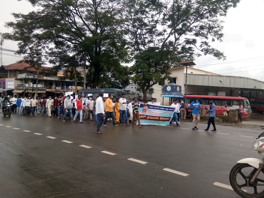 ಪ್ರತಿಭಟನೆಗೂ ಮುನ್ನ ನೂರಾರು ಕಾರ್ಯಕರ್ತರು ನಗರದ ಪ್ರಮುಖ ರಸ್ತೆಗಳಲ್ಲಿ ಪ್ರತಿಭಟನಾ ಮೆರವಣಿಗೆ ನಡೆಸಿ ಪಟ್ಟಣದ ಲಯನ್ಸ್ ವೃತ್ತದಲ್ಲಿ ಸಭೆ ನಡೆಸಿದರು. ಈ ವೇಳೆ ಸರಕಾರ ಹಾಗೂ ಪೊಲೀಸ್ ಇಲಾಖೆ ವಿರುದ್ಧ ಧಿಕ್ಕಾರದ ಘೋಷಣೆಗಳನ್ನು ಕೂಗಿ ಆಕ್ರೋಶ ವ್ಯಕ್ತಪಡಿಸಿದರು. ನಂತರ ತಾಲೂಕು ಕಚೇರಿ ಆವರಣಕ್ಕೆ ತೆರಳಿ ತಹಶೀಲ್ದಾರ್ ನಾಗರಾಜ್ ಮೂಲಕ ಸರ್ಕಾರಕ್ಕೆ ಮನವಿ ಸಲ್ಲಿಸಿದರು.