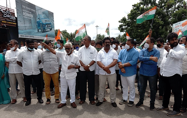 ಕಾರ್ಕಳ ಎಸ್ಸೈ ಅಮಾನತಿಗೆ ಆಗ್ರಹಿಸಿ ಕಾಂಗ್ರೆಸ್ ಕಾರ್ಯಕರ್ತರಿಂದ ಧರಣಿ