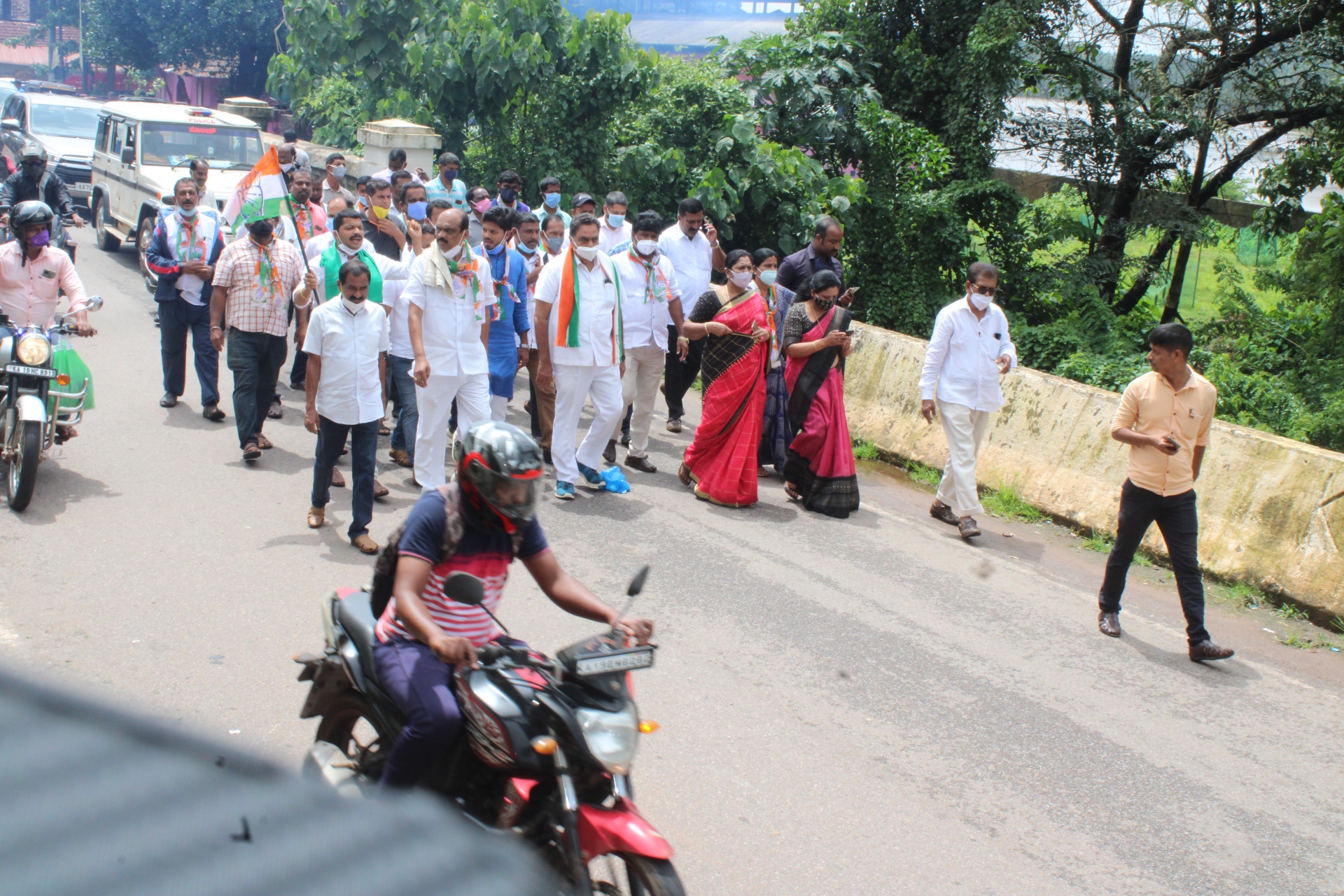 ಮಾಜಿ ಸಚಿವ ರಮಾನಾಥ ರೈ ಅವರು ಬಂಟ್ವಾಳ ಬಡ್ಡಕಟ್ಟೆಯಲ್ಲಿ ಹನುಮಾನ್ ದೇವಸ್ಥಾನದ ಬಳಿ ಚಾಲನೆ ನೀಡಿದರು. ಬಳಿಕ ಬಿ.ಸಿ.ರೋಡಿನ ಮೇಲ್ಸ್ ತುವೆಯ ಕೆಳಭಾಗದಲ್ಲಿ ಸಂಪನ್ನಗೊಂಡ ಪ್ರತಿಭಟನಾಕಾರರನ್ನುದ್ದೇಶಿಸಿ ಮಾತನಾಡಿ , ಬಿಜೆಪಿ ಭಾವನಾತ್ಮಕ ವಿಚಾರ ಎತ್ತಿ ಜನರ ದಾರಿ ತಪ್ಪಿಸುವ ಮೂಲಕ ತಮ್ಮ ವೈಫಲ್ಯವನ್ನು ಮುಚ್ಚಿ ಹಾಕಲು ಯತ್ನಿಸುತ್ತಿದ್ದು, ತೈಲಬೆಲೆ ಮತ್ತು ಆಹಾರ ಸಾಮಾಗ್ರಿಗಳನ್ನು ತಡೆಗಟ್ಟುವಲ್ಲಿ ಕೇಂದ್ರ ಸರಕಾರ ಸಂಪೂರ್ಣ ವಿಫಲವಾಗಿದೆ ಎಂದು ಟೀಕಿಸಿದರು.