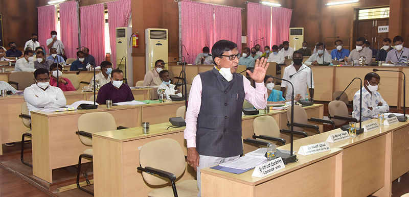 ಮಂಗಳೂರು, ಜು. 12: ಜಿಲ್ಲಾ ಮಟ್ಟದ ಅಧಿಕಾರಿಗಳು ತಮ್ಮ ಅಧೀನ ಕಚೇರಿಗಳಲ್ಲಿ ವಿವಿಧ ಯೋಜನೆಗಳಿಗೆ ಸಂಬಂಧಿಸಿ ಕಡತಗಳ ವಿಲೇ ಮಾಡುವಲ್ಲಿ ವಿಳಂಬ ಮಾಡದಂತೆ ಸರಕಾರ ಈಗಾಗಲೇ ಸೂಚನೆ ನೀಡಿದೆ. ಅದರಂತೆ ಜಿ.ಪಂ. ಸಿಇಒರವರು ತಾಲೂಕು ಪಂಚಾಯತ್ ಇಒಗಳ ಮೂಲಕ ತಮ್ಮ ಅಧೀನದ ಗ್ರಾಪಂ ವ್ಯಾಪ್ತಿಯ ಹಾಗೂ ಜಿಲ್ಲಾಧಿಕಾರಿ ಹಾಗೂ ತಹಶೀಲ್ದಾರರು ಕಂದಾಯ ಇಲಾಖೆಯ ವ್ಯಾಪ್ತಿಯ ಕಡತಗಳನ್ನು ವಿಳಂಬ ಮಾಡದೆ ವಿಲೇ ಮಾಡಬೇಕು ಎಂದು ಜಿಲ್ಲಾ ಉಸ್ತುವಾರಿ ಸಚಿವ ಕೋಟ ಶ್ರೀನಿವಾಸ ಪೂಜಾರಿ ನಿರ್ದೇಶನ ನೀಡಿದರು.