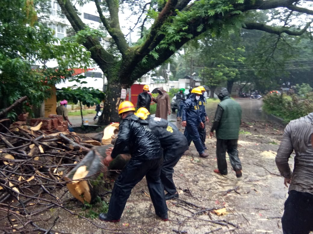 ಬೆಳಗ್ಗಿನಿಂದ ಮಧ್ಯಾಹ್ನದವರೆಗೆ ಗಾಳಿಯೊಂದಿಗೆ ಭಾರೀ ಮಳೆ ಸುರಿದಿದ್ದು, ಮಧ್ಯಾಹ್ನದ ಬಳಿಕ ಕೊಂಚ ಬಿಡುವು ನೀಡಿತ್ತು.