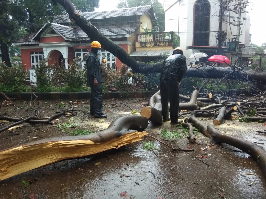 ಮಂಗಳೂರು ನಗರದಲ್ಲೂ ಭಾರೀ ಗಾಳಿಯೊಂದಿಗೆ ಮಳೆ ಸುರಿದಿದೆ. ಇದರಿಂದ ನಗರದ ಕದ್ರಿ ಶಿವಭಾಗ್ನಲ್ಲಿ ಬೆಳಗ್ಗೆ ದೊಡ್ಡ ಮರವೊಂದು ಧರಾಶಾಹಿಯಾಗಿದೆ. ಲಾಲ್ಬಾಗ್ನಲ್ಲಿ ಅಪಾರ್ಟ್ಮೆಂಟ್ವೊಂದರ ಆವರಣ ಗೋಡೆ ಮೇಲೆ ಮರ ಬಿದ್ದಿತ್ತು. ಅಗ್ನಿಶಾಮಕ ಮತ್ತು ಅರಣ್ಯ ಇಲಾಖೆ ಸಿಬ್ಬಂದಿ ಮರಗಳನ್ನು ತೆರವುಗೊಳಿಸಿದ್ದಾರೆ.
