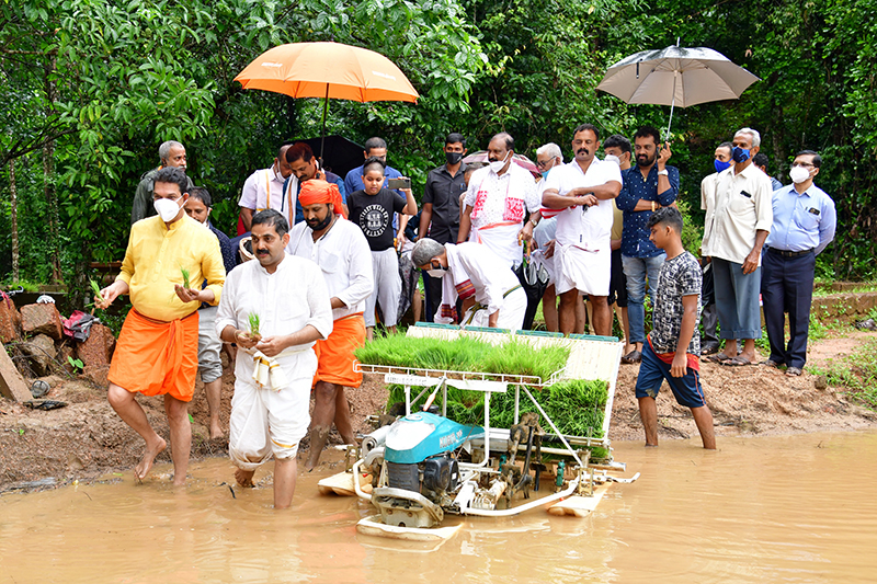 ಅವರು ಮಂಗಳವಾರ ಪುತ್ತೂರು ಶ್ರೀ ಮಹಾಲಿಂಗೇಶ್ವರ ದೇವಸ್ಥಾನದ ವತಿಯಿಂದ ರೂಪಿಸಲಾದ ಯೋಜನೆಯಂತೆ ಪುತ್ತೂರು ತಾಲೂಕಿನ ಕೆಮ್ಮಿಂಜೆ ಗ್ರಾಮದ ನೈತಾಡಿ ಬಾಳೆಗದ್ದೆ ನಿವಾಸಿ ಗೋಪಾಲಕೃಷ್ಣ ಭಟ್ ಎಂಬವರ ಹಡೀಲು ಗದ್ದೆಯಲ್ಲಿ ಬೇಸಾಯಕ್ಕೆ ಚಾಲನೆ ನೀಡಿ ಮಾತನಾಡಿದರು. ಗದ್ದೆಗಳಿದು ಸಾಂಪ್ರದಾಯಿಕ ನೇಗಿಲು ಹಿಡಿದು ಉಳುಮೆ ನಡೆಸಿ, ಟ್ರಾಕ್ಟರ್ ಮೂಲಕವೂ ಉಳುಮೆ ನಡೆಸಿ, ಗದ್ದೆಯಲ್ಲಿ ನೇಜಿ ನಾಟಿ ಮಾಡುವ ಮೂಲಕ ಅವರು ಗದ್ದೆ ಬೇಸಾಯಕ್ಕೆ ಚಾಲನೆ ನೀಡಿದರು.