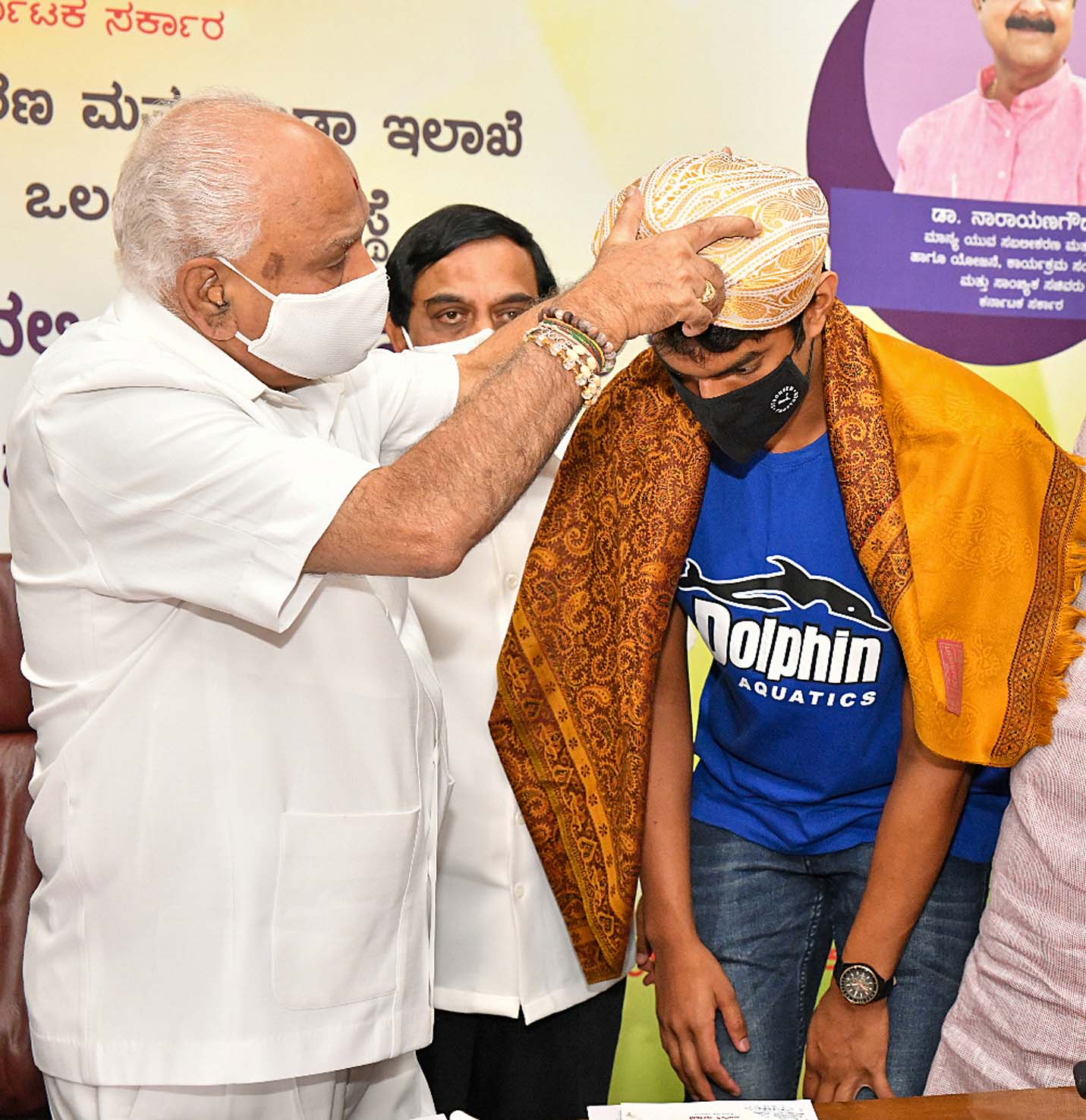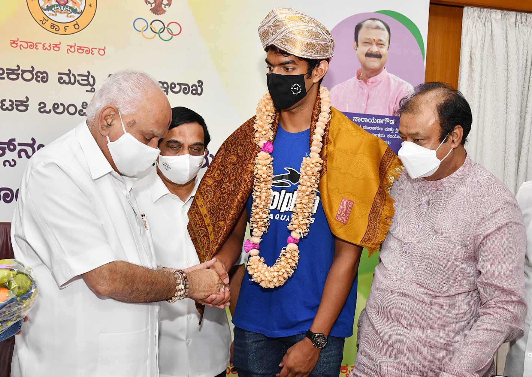 ಮುಖ್ಯಮಂತ್ರಿಗಳ ಗೃಹ ಕಚೇರಿ ಕೃಷ್ಣದಲ್ಲಿ ನಡೆದ ಕಾರ್ಯಕ್ರಮದಲ್ಲಿ, ಒಲಿಂಪಿಕ್ ಕ್ರೀಡಾಕೂಟಕ್ಕೆ ಆಯ್ಕೆಯಾಗಿರುವ ಕರ್ನಾಟಕದ ಕ್ರೀಡಾಪಟು ಶ್ರೀಹರಿ ನಟರಾಜ್ ಅವರಿಗೆ ಯಡಿಯೂರಪ್ಪ ಪ್ರೋತ್ಸಾಹಧನದ ಚೆಕ್ ವಿತರಿಸಿದರು.