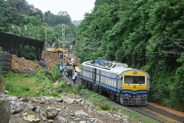 ಕುಲಶೇಖರ ಬಳಿ ರೈಲ್ವೆ ಹಳಿಗೆ ತಡೆಗೋಡೆ ಕುಸಿತ: ರೈಲು ಸಂಚಾರ ರದ್ದು