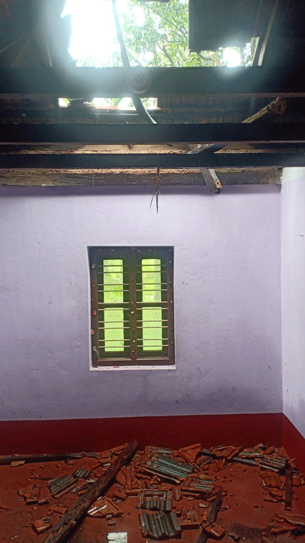 ಕಿನ್ಯಾ ಗ್ರಾಮ ಪಂಚಾಯತ್ ವ್ಯಾಪ್ತಿಯ ಮೀನಾದಿ ಎಂಬಲ್ಲಿ ಅಬೂಬಕರ್ ಎಂಬವರ ಮನೆ ಗಾಳಿಮಳೆಗೆ ಹಾನಿಯಾಗಿದೆ.