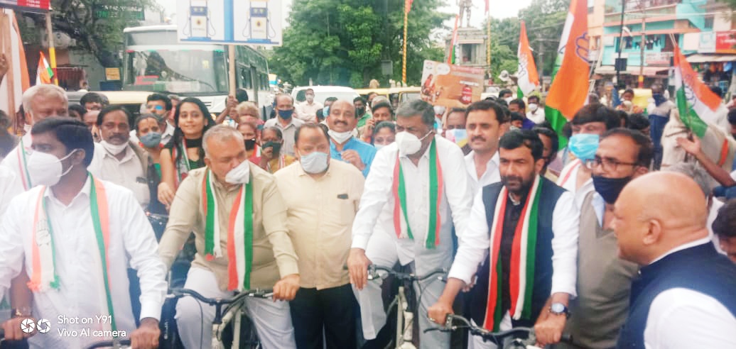ಇಂಧನ ಬೆಲೆಯೇರಿಕೆ ವಿರೋಧಿಸಿ ಕಾಂಗ್ರೆಸ್ ನಿಂದ 'ಸೈಕಲ್ ಜಾಥಾ'